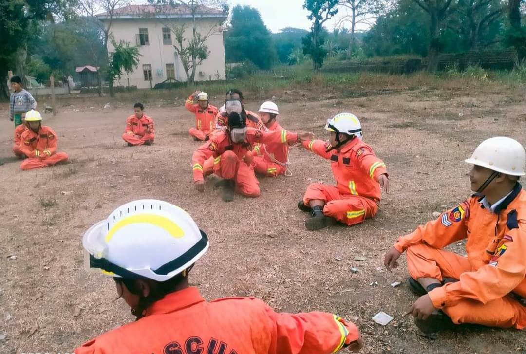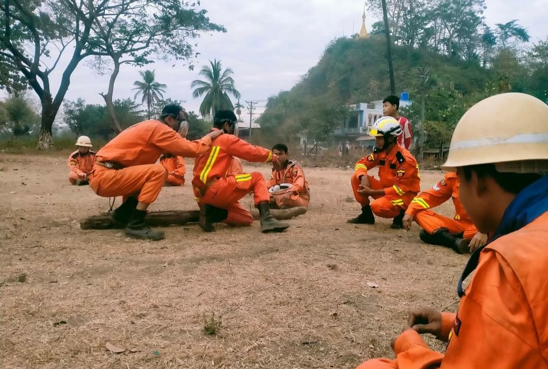 ရခိုင်ပြည်နယ်၊ မြောက်ဦးခရိုင်၊ မြောက်ဦးမြို့၌ သဘာဝဘေးကြိုတင်ကာကွယ်ရေးအတွက် ရှာဖွယ်ကယ်ဆယ်ရေးတပ်ဖွဲ့ဝင်များမှ ဇာတ်တိုက်လေ့ကျင်းဆောင်ရွက်ခြင်းကို ညောင်ပင်ဈေး ရပ်ကွက် ၊ ခရိုင်မီးသတ်ဦးစီးဌာနရုံး ဘေးကွင်းပြင်၌ ယနေ့နံနက် ၉ နာရီ အချိန်က ခရိုင်/ မြို့နယ်မီးသတ်စခန်းမှ ရှာဖွေကယ်ဆယ်ရေးတပ်ဖွဲ့ဝင်များ ငလျင်ဘေး၊ မုန်တိုင်းဘေး အန္တရာယ်ဆိုင်ရာ ဇာတ်တိုက်လေ့ကျင့်ခြင်းများ ဆောင်ရွက်လျက်ရှိကြောင်း သိရသည်။