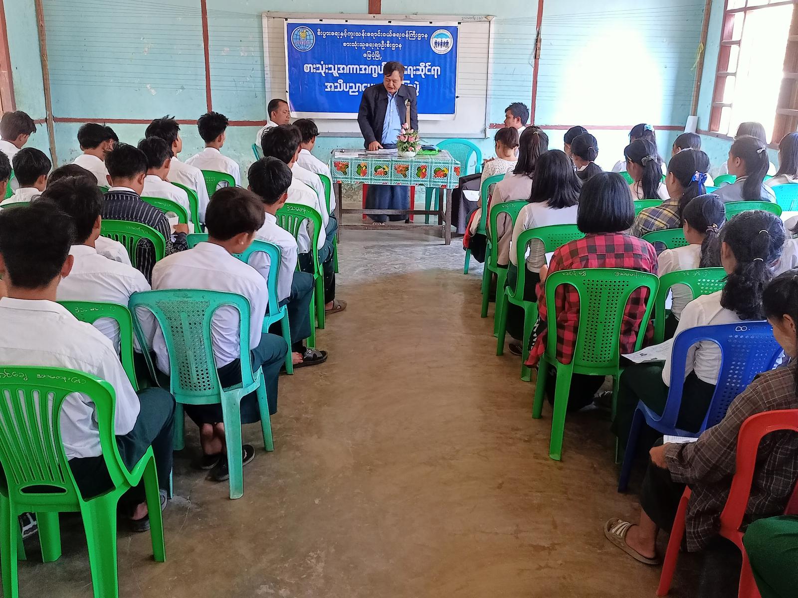 ရှေးဦးစွာ ကျောင်းအုပ်ဆရာကြီးက အဖွင့်အမှာစကားပြောကြားပြီး စားသုံးသူရေးရာဦးစီးဌာနမှ မြို့နယ်ဦးစီးမှူး ဦးစံညွန့်က ကျောင်းသား/သူများအားစားသုံးသူရေးရာဦးစီးဌာန၏ လုပ်ငန်းဆောင်ရွက်နေမှုများ၊ စားသုံးသူအခွင့်အရေးနှင့် တာဝန်များ၊ စီးပွားရေးလုပ်ငန်းရှင်များ ၏ တာဝန်များ၊ စားသုံးသူကာကွယ်ရေး ဥပဒေအခန်း(၁၈)ပါကုန် အညွှန်းအမှတ်အသား ဖော်ပြချက်နှင့်ပတ်သက်၍ ရှင်းလင်းဟောပြောသည်။