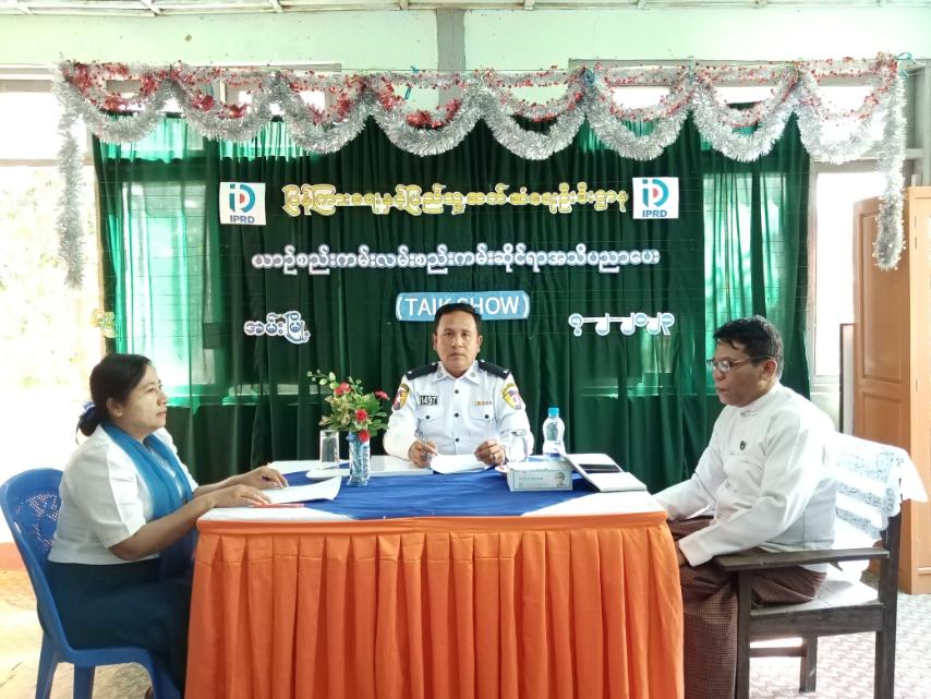 ထိုသို့ အသိပညာပေး ဆောင်ရွက်ရာတွင် မြို့နယ်ပြန်ကြားရေးနှင့်ပြည်သူ့ဆက်ဆံရေးဦးစီး ဌာနမှ ဦးစီးအရာရှိ ဦးစန်းဝင်းက အသိပညာပေး (Talk Show) များကို မြို့နယ်အဆင့် ဌာနဆုင်ရာများနှင့် ပေါင်းစပ်ကျင်းပ၍ ပြည်သူများ သိရှိနိုင်ရန် နိုင်ငံပိုင်မီဒီယာသတင်းစာများတွင် အသိပညာပေးခြင်း၊ Online မှတစ်ဆင့် လွှင့်တင်ပေးခြင်းတို့ကို ဆွေးနွေးပြောကြားခဲ့သည်။ ဆက်လက်၍ အမှတ်(၂၁) ယာဉ်ထိန်းရဲတပ်ဖွဲ့စု၊ အမ်းယာဉ် ထိန်းရဲတပ်ဖွဲ့စိတ်မှူး ဒုရဲအုပ် သန့်ဇင်ဦးက ယာဉ်စည်း ကမ်းလမ်းစည်းကမ်းနှင့် ပတ်သက်ပြီး လမ်းအသုံးပြုသူများ သိစေရန်အတွက် ၂၀၂၂ ခုနှစ် ပြဋ္ဌာန်းချက် လမ်းညွှန်အမှတ်အသားများကို အများပြည်သူ ကျယ်ကျယ်ပြန့်ပြန့် သိရှိနိုင်ရေးဆွေးနွေးခြင်း၊ လမ်းညွှန်များဆိုတာ ယာဉ်မောင်းသူ လမ်းအသုံး ပြုသူများ သိသာမြင်သာအောင် လမ်း၏ တစ်ဘက်တချက်မှာ စိုက်ထူထားသော ဆိုင်ပုဒ်တွေကိုဆိုလိုကြောင်း၊ လမ်းညွှန်များကို စတုဂံ အဝါရောင်အပေါ်မှာအနက် ရောင်ဆေးအမှတ်အသား သင်္ကတနဲ့ဖြင့် ရေးဆွဲထားခြင်း၊ အဝိုင်းပေါ်တွင် အနက်ရောင်ဆေးရေး အမှတ်အသား သင်္ကတနဲ့ အနီရောင် ဖြတ်မျဉ်းများ ရေးဆွဲထားခြင်း၊ အပြာရောင်အဝိုင်းပေါ်တွင် အဖြူရောင်ဆေးရေး အမှတ် အသား သင်္ကတနဲ့ ရေးဆွဲထားခြင်း၊ အပြာရောင်လေးထောင့်ကွက်ပေါ်တွင် အနက်/ အဖြူရောင် ဆေးရေးအမှတ်အသား သင်္ကတနဲ့ ရေးဆွဲထားခြင်း ဖြစ်ပါတယ်။ လမ်းအမှတ်အသားဆိုသည်မှာ လမ်း၏ အလယ်မျဉ်း ရပ်မျဉ်းတွေကို အဖြူရောင်တွေနဲ့ ရေးဆွဲထားခြင်း အဝါရောင်မျဉ်းတွေက သတိပေးခြင်း သင်္ကတနဲ့ ရေးဆွဲထားခြင်း၊ လမ်းညွှန် အမှတ်အသားများနှင့် အချက်ပြခြင်းများကို အဝါရောင်အန္တရာယ် သတိပေးခြင်း၊ အစိမ်းရောင် ခွင့်ပြုညွှန်ပြခြင်း၊ အနီရောင် တားမြစ်ကန့်သတ်ခြင်း၊ အပြာရောင် မဖြစ်မနေ လိုက်နာရန် အမိန့်ပေးခြင်း အဓိပ္ပယ်ဖြစ်ကြောင်း ဆွေးနွေးပြောကြားခဲ့သည်။