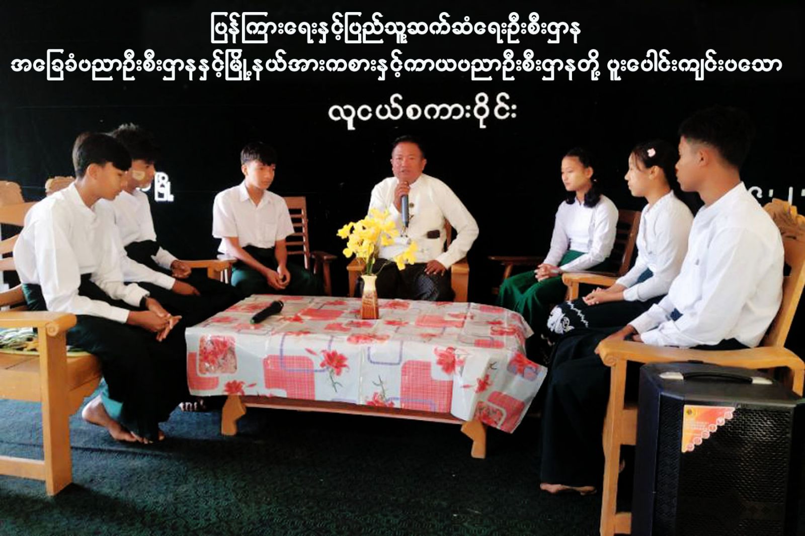 ထို့နောက် လူငယ်စကားဝိုင်း ကိုကျင်းပရာပြန်ကြားရေးနှင့်ပြည်သူ့ဆက်ဆံရေးဦးစီးဌာန ၊ မြို့နယ်ရုံးမှ ဦးစီးအရာရှိ ဦးမြင့်ရွှေ ဦးဆောင်ဆွေးနွေးသူအဖြစ်ပါဝင်ဆောင်ရွက်ပြီး Grade-9 မှ မောင်သတိုးတေဇ နှင့် မောင်ဖြိုးအေးကျော်တို့က လူငယ်နှင့်စည်းကမ်းခေါင်းစဉ်ဖြင့်လည်းကောင်း ၊ Grade-9 မှ မောင်ဝသန်အောင် နှင့် မခင်မီမီအောင်တို့က လူငယ်နှင့်အားကစားခေါင်း စဉ်ဖြင့်လည်းကောင်း ၊ Grade-11 မှ မောင်ဖြိုးမင်းကို နှင့် မညိုညိုစန်းတို့က လူငယ်နှင့် မူးယစ်ဆေးခေါင်းစဉ်ဖြင့်လည်းကောင်း ဆွေးနွေးကြပြီး ကျောင်းသား၊ ကျောင်းသူများ၏ ပြန်လည်မေးမြန်းချက်မှုများကို ဦးစီးအရာရှိ ဦးမြင့်ရွှေ နှင့် ကျောင်းသား၊ကျောင်းသူ များက ပြန်လည်ဖြေကြားဆွေးနွေးသည်။ထို့နောက် အခမ်းအနားသို့တက်ရောက်လာကြသည့် ကျောင်းသား၊ ကျောင်းသူများက ပြန်ကြားရေးနှင့်ပြည်သူ့ဆက်ဆံရေးဦးစီးဌာန ကခင်းကျင်းပြသ ထားသော အသိပညာပေး နံရံကပ်စာစောင်နှင့် စာအုပ်ပြပွဲကို စိတ်ဝင်စားစွာကြည့်ရှုကြသည်။