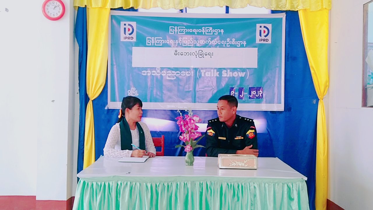 ရခိုင်ပြည်နယ်၊ သံတွဲခရိုင်၊ဂွမြို့နယ်တွင် မီးဘေးလုံခြုံရေး အသိပညာပေး Talk Show ကို ယနေ့မွန်းလွဲပိုင်းက ပြန်ကြားရေးနှင့်ပြည်သူ့ဆက်ဆံရေးဦးစီးဌာန Community Centre ခန်းမ၌ ကျင်းပပြုလုပ်ခဲ့သည်။