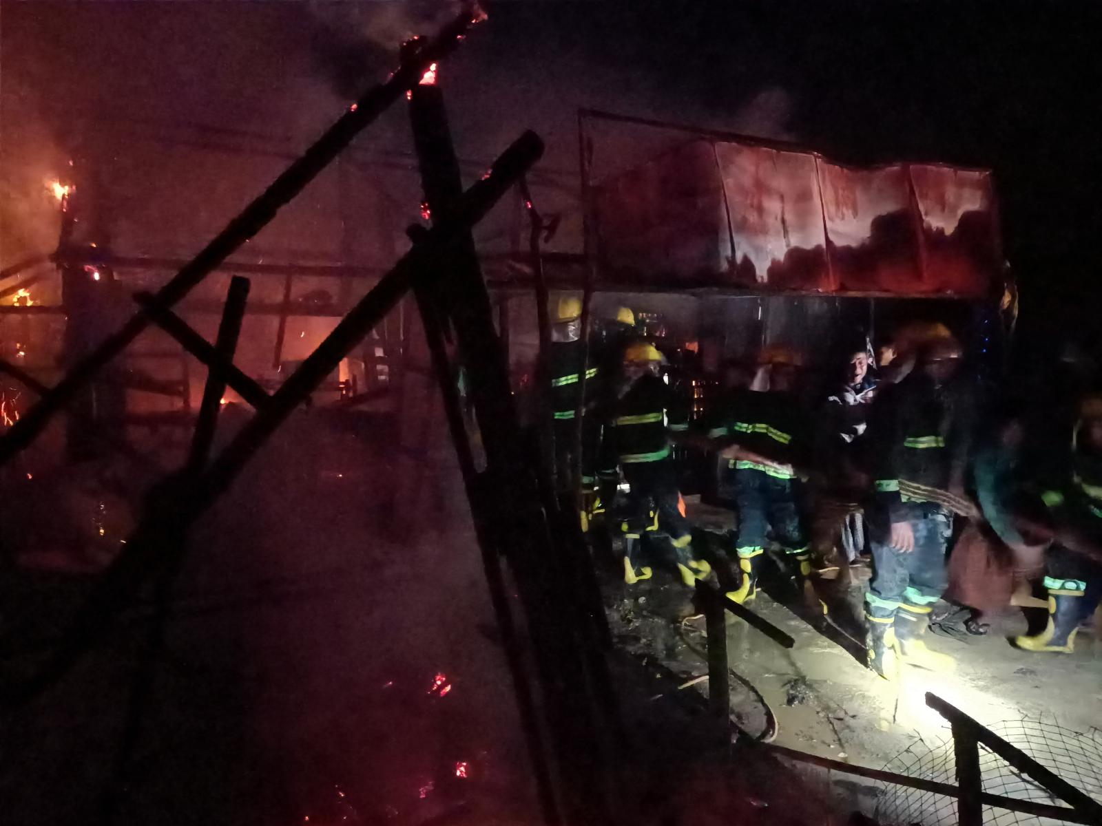 မီးလောင်မှုဖြစ်ပွားရာသို့ မြို့နယ်မီးသတ်ဦးစီးမှူး ဦးထွန်းဝင်းနိုင်ဦးဆောင်သော သန္ဓေတပ်ဖွဲ့ဝင် (၃၄) ဦး၊ အရန်မီးသတ်တပ်ဖွဲ့ဝင်(၁၀)ဦး၊ မီးငြှိမ်းသတ်ယာဉ် (၂)စီး၊ မီးသတ်ရေသယ်ယာဉ်(၁)စီးတို့ဖြင့် ငြှိမ်းသတ်ခဲ့ရာ ၉ နာရီ ၅၃ အချိန်ခန့်တွင် မီးငြိမ်းသွားခဲ့သည်။