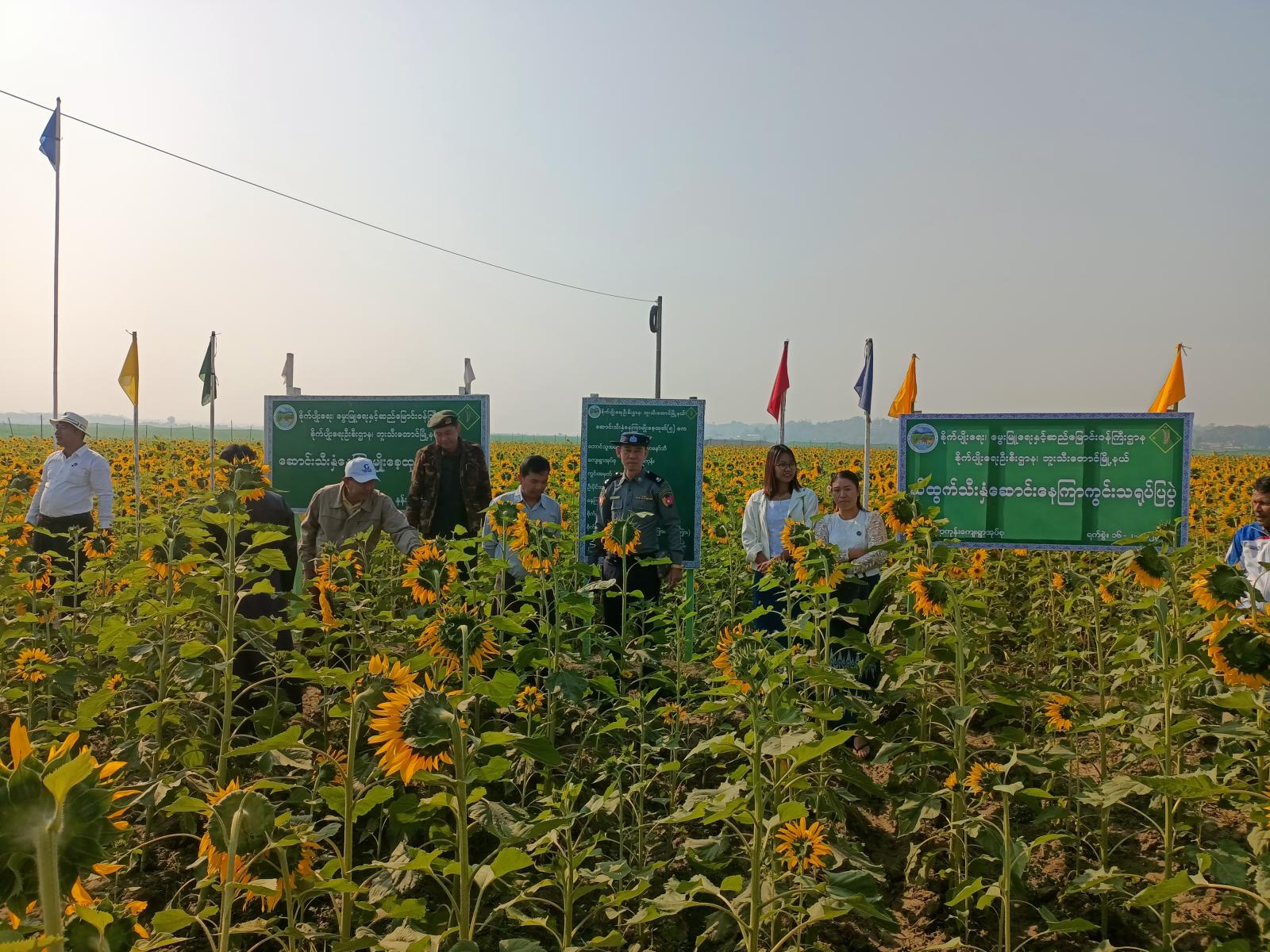 ရခိုင်ပြည်နယ်၊ မောင်တောခရိုင်၊ ဘူးသီးတောင်မြို့နယ် နန်းရာကုန်းကျေးရွာအုပ်စု၌ မြို့နယ် စိုက်ပျိုးရေးဦးစီးဌာနမှ (၁)ဧကအထွက်နှုန်းတိုးတက်ရေးအတွက် တောင်သူပညာပေးနေကြာသီးနှံ ကွင်းသရုပ်ပြအခမ်းအနားကို ယမန်နေ့နံနက် ၉ နာရီအချိန်က အဆိုပါကွင်း၌ ကျင်းပခဲ့သည်။