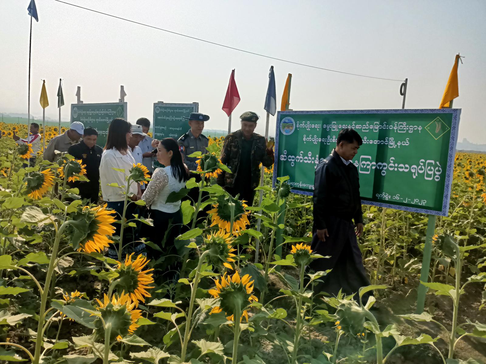 အဆိုပါဆီထွက်သီးနှံနေကြာကွင်းသရုပ်ပြ အခမ်းအနားသို့ မြို့နယ်စီမံအုပ်ရေးအဖွဲ့ဥက္ကဋ္ဌ ဦးကျန်အေးနှင့်အဖွဲ့ဝင်များ၊ ဌာနဆိုင်ရာအကြီးအကဲများ၊ တောင်သူများစုစုပေါင်း (၇၀) ဦးတက်ရောက်ခဲ့ကြောင်း သိရသည်။