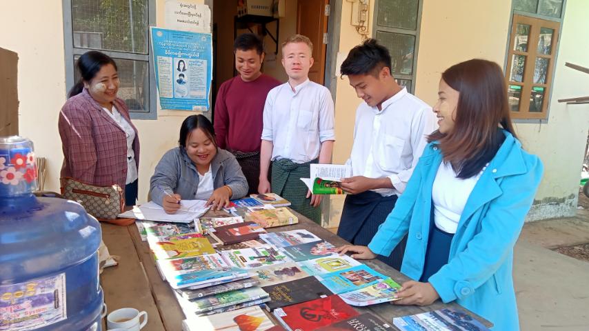 ရခိုင်ပြည်နယ်၊ ကျောက်ဖြူခရိုင်၊ အမ်းမြို့နယ်တွင် စာဖတ်ရှိန်မြှင့်တင်ရေးအတွက် ပြန်ကြားရေးနှင့်ပြည်သူ့ဆက်ဆံရေးဦးစီးဌာနမှ ဝန်ထမ်းများက ယနေ့နေ့လည်ပိုင်းက ရွေ့ လျားစာကြည့်တိုက် Mobile Library စနစ်ဖြင့် မြို့နယ်ကော်မရှင်ရုံးသို့ သွားရောက်၍ စာအုပ်၊စာစောင်များ အခမဲ့ငှားရမ်းခဲ့သည်။