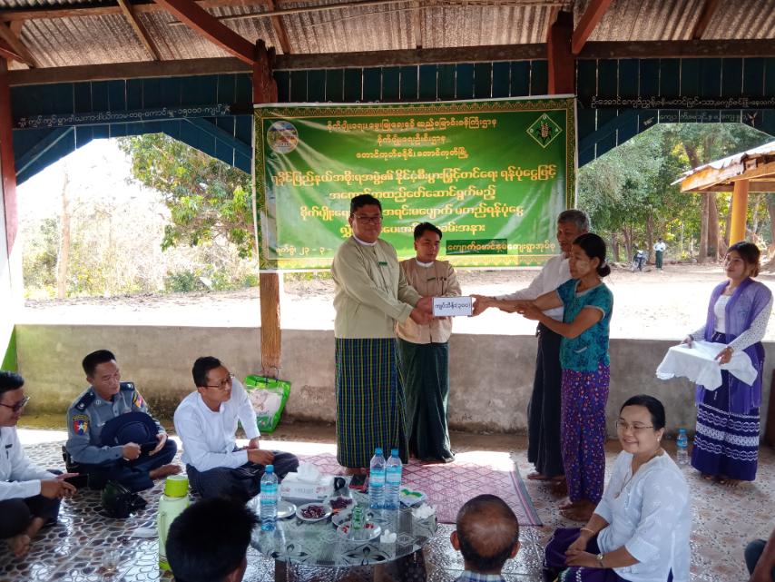 အခမ်းအနားတွင် မြို့နယ်စီမံအုပ်ချုပ်ရေးအဖွဲ့ ဥက္ကဋ္ဌ ဦးဇာနည်တိုး ကအမှာစကားပြောကြားပြီးနောက်မြို့နယ်စိုက်ပျိုးရေးဦးစီးဌာန၊ မြို့နယ်ဦးစီးမှူး ဦးထွန်းသိန်းက နိုင်ငံ့စီးပွားမြှင့်တင်ရေး ရန်ပုံငွေများပေးအပ်ရသည့် ရည်ရွယ်ချက်များကိုရှင်းလင်းပြီးနောက် အကောင်အထည်ဖော်ဆောင်ရွက် ကြမည့်ကင်းတောင် စံပြကျေးရွာ၊ တရဘကျေးရွာနှင့် ကျောက်မောင်နှမကျေးရွာများသို့ တစ်ရွာလျှင် အရင်းမပျောက် မတည်ငွေကျပ်သိန်း(၃၀၀)စီကို လွှဲပြောင်းပေးအပ်ခဲ့ကြောင်းမြို့နယ်စိုက်ပျိုးရေးဦးစီးဌာနမှ သိရသည်။