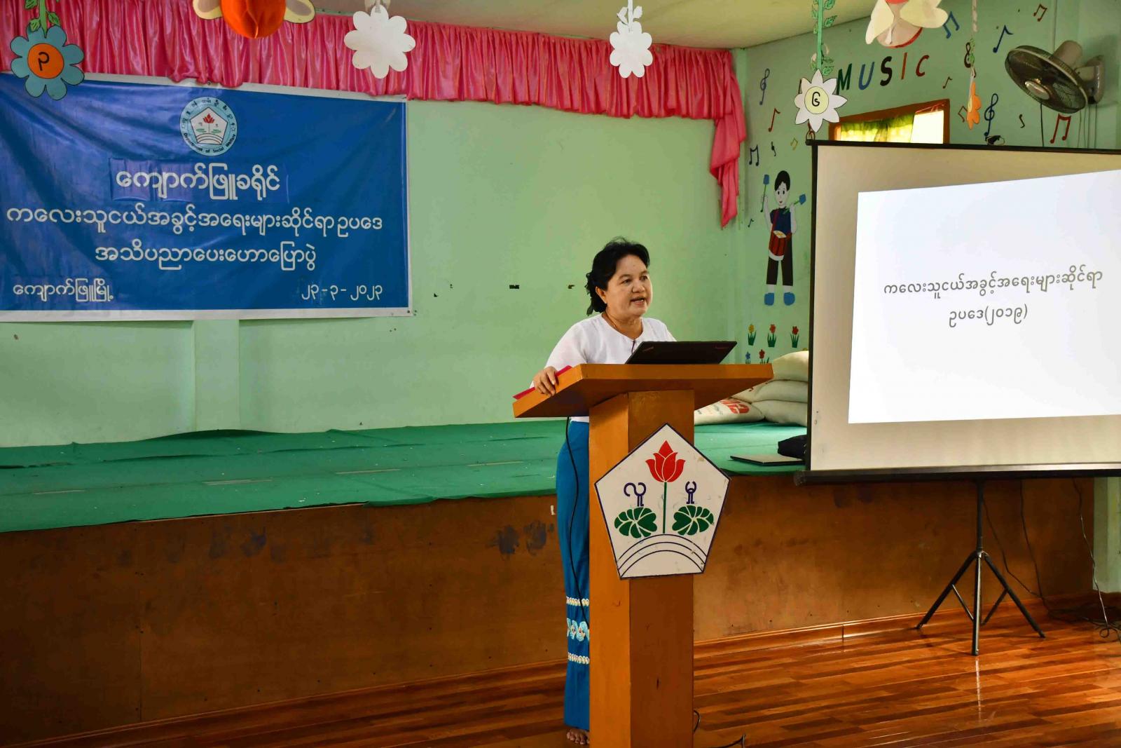 ရခိုင်ပြည်နယ်၊ ကျောက်ဖြူခရိုင် လူမှုဝန်ထမ်းဦးစီးဌာနမှကြီးမှူး ကျင်းပပြုလုပ်သည့် ကလေးသူငယ်အခွင့်အရေးများဆိုင်ရာ အသိပညာပေးဟောပြောပွဲကို ယမန်နေ့နံနက်ပိုင်းက အဆိုပါဦးစီးဌာနရုံး အစည်းအဝေးခန်းမတွင် ကျင်းပပြုလုပ်သည်။