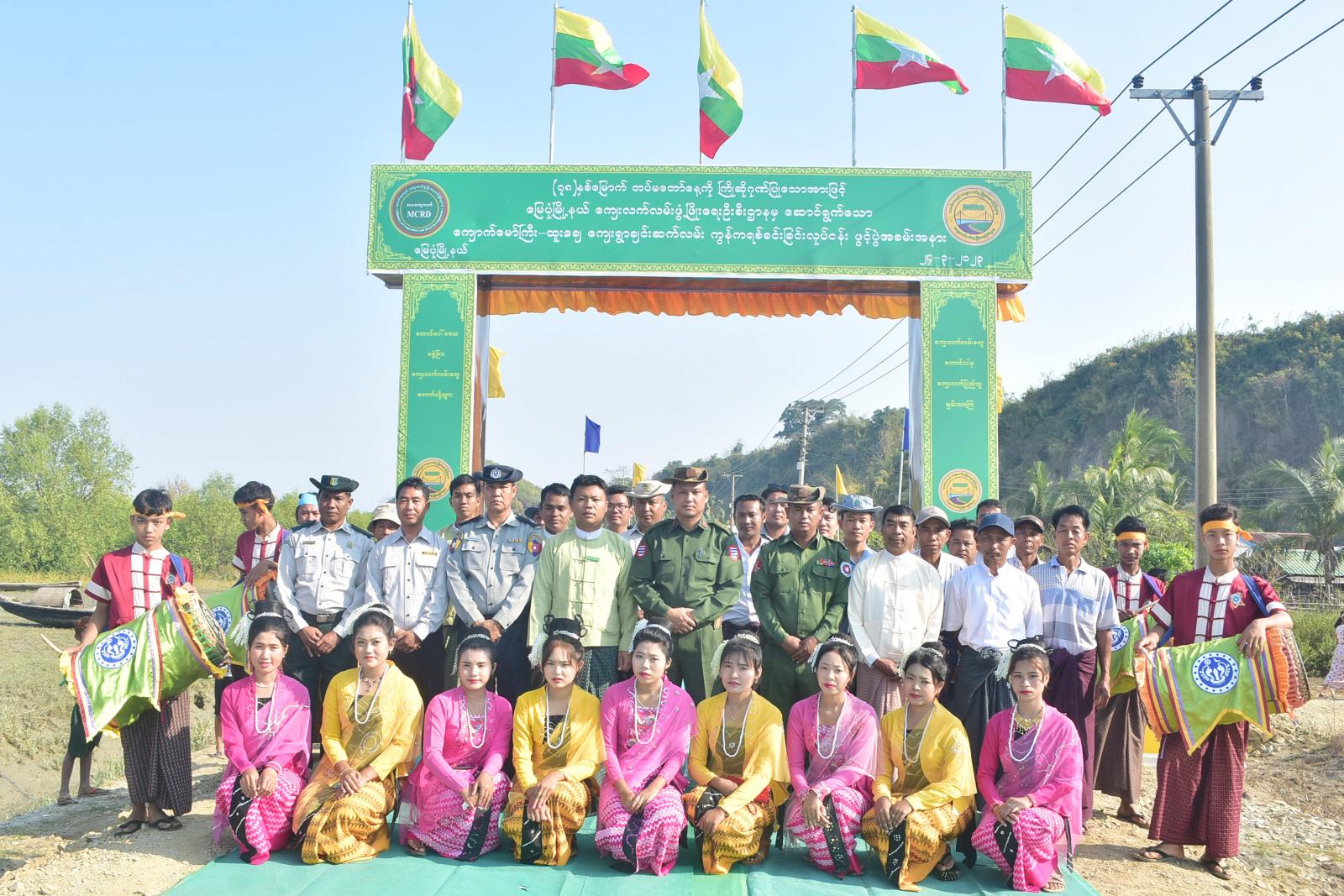 လမ်းဖွင့်ပွဲ အခမ်းအနားသို့ နယ်မြေခံတပ်နယ်မှ ဗိုလ်မှူးကြီး မျိုးညွှန့်ဦးနှင့် တပ်မတော်သား များ၊ မြို့နယ်စီမံအုပ်ချုပ်ရေးအဖွဲ့ဥက္ကဌနှင့်အဖွဲ့ဝင်များ၊ ဌာနဆိုင်ရာ အကြီးအကဲများ၊ ဒေသခံပြည်သူများ တက်ရောက်ကြသည်။