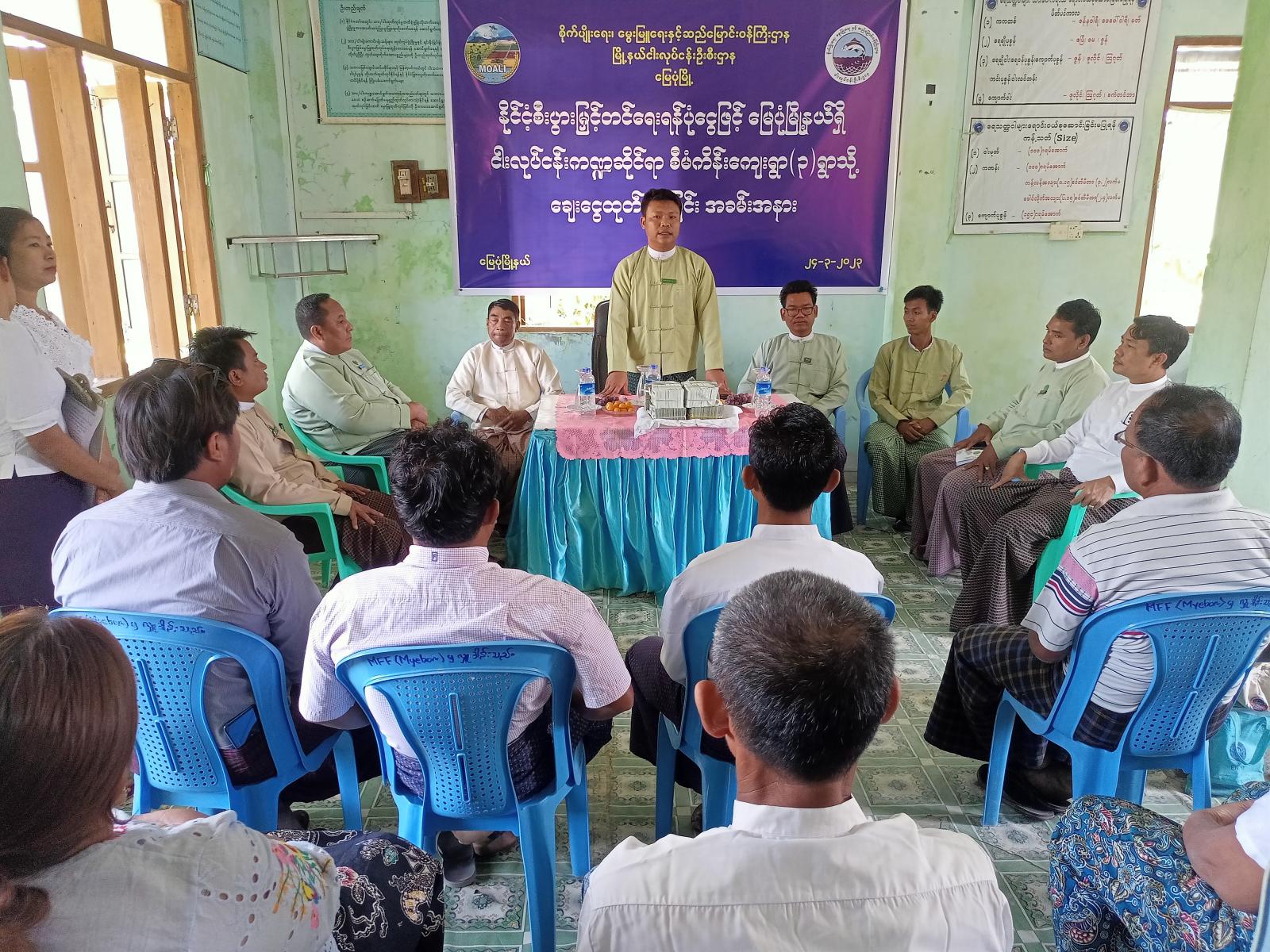 ရခိုင်ပြည်နယ်၊ မြောက်ဦးခရိုင်၊ မြေပုံမြို့နယ်၌ နိုင်ငံ့စီးပွားမြှင့်တင်ရေးစီမံကိန်းမှ မတည်ငွေများအား ငါးလုပ်ငန်းကဏ္ဍဆိုင်ရာ စီမံကိန်းကျေးရွာ(၃)ရွာရှိ ငါးလုပ်ငန်းလုပ်ကိုင်သူ ပြည်သူများသို့ လွှဲပြောင်းပေးအပ်ခြင်း အခမ်းအနားကို ယနေ့နံနက်(၁၀)နာရီအချိန်က မြို့နယ်ငါးလုပ်ငန်းဦးစီးဌာန ရုံးအစည်းအဝေးခန်းမ၌ ကျင်းပပြုလုပ်သည်။