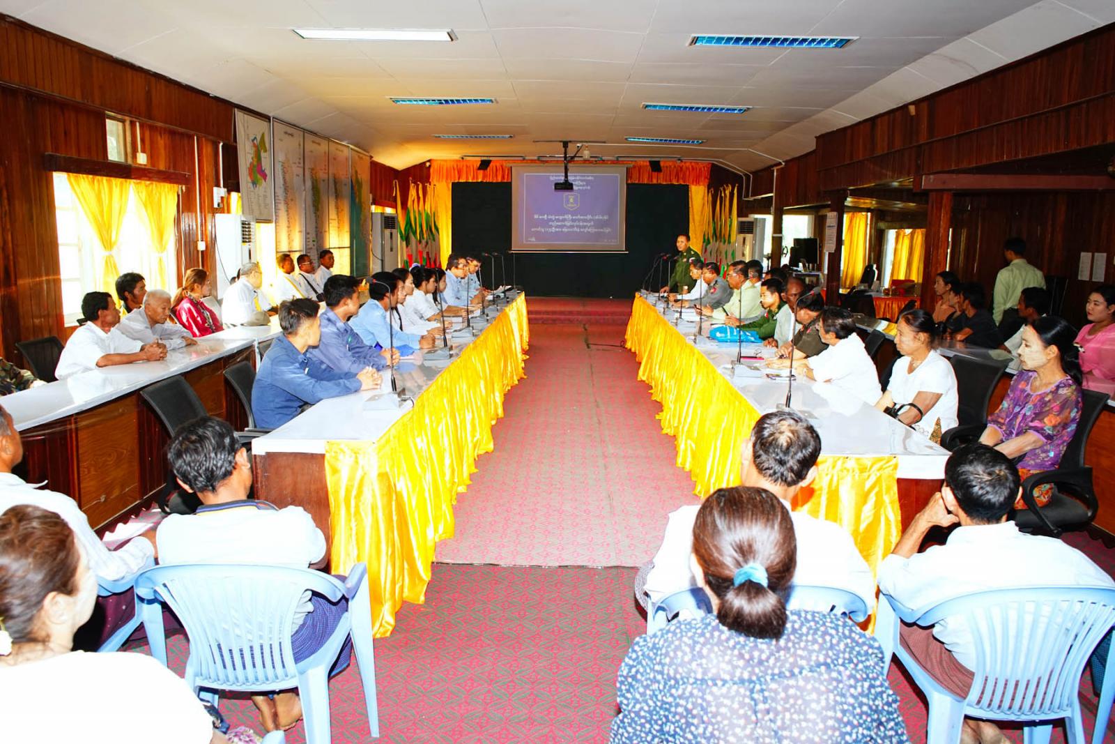ရှေးဦးစွာ သံတွဲခရိုင်စီမံအုပ်ချုပ်ရေးအဖွဲ့ ခေတ္တဥက္ကဋ္ဌ ဒုတိယဗိုလ်မှူးကြီး ဝင်းဗိုလ်က မြေယာ/ သီးနှံလျော်ကြေးငွေ ပေးအပ်ခြင်းနှင့်ပတ်သက်၍ အမှာစကားပြောကြားသည်။ ထို့နောက် ရခိုင်ပြည်နယ် လျှပ်စစ်အင်ဂျင်နီယာရုံးမှ လက်ထောက်ညွှန်ကြားရေးမှူး ဦးရဲနိုင်က တောင်သူများအား မြေယာ/သီးနှံ လျော်ကြေးငွေ ပေးအပ်နိုင်ရေးအတွက် လုပ်ငန်းဆောင်ရွက်ရမှု အခြေအနေများနှင့် လုပ်ထုံးလုပ်နည်း၊ ငွေစာရင်း စည်းမျဉ်းစည်းကမ်းဆိုင်ရာများကို ရှင်းလင်း ပြောကြားခဲ့သည်။