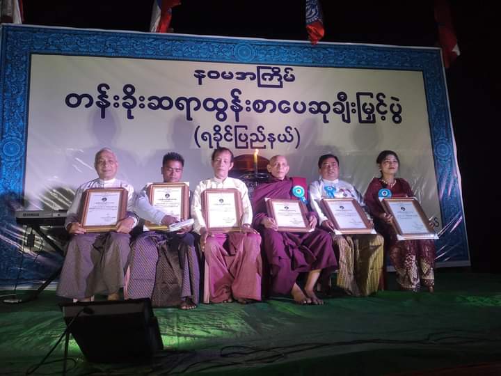 အဆိုပါစာပေဆုများချီးမြှင့်ပွဲတွင် တစ်သက်တာစာပေဆုကို ဦးမောင်ဗသိန်းအား လည်းကောင်း၊ ဂီတစာဆိုဆုကို ကိုလွမ်းဝေ(သံတွဲ)အား လည်းကောင်း၊ ဝတ္ထုဆုကို မြင့်သုမိုး အားလည်းကောင်း၊ ကဗျာဆုကို မိုးပြို(မင်းပြား)အားလည်းကောင်း၊ ကလေးကဗျာဆုကို ဖြူဖွေး(နောင်မင်းမြီ)အား လည်းကောင်း၊ ဆောင်းပါးဆုကို ဇော်လွင်ဦး(ဟင်္သတ)တို့အား အသီးသီးချီးမြှင့်ပေးခဲ့သည်။