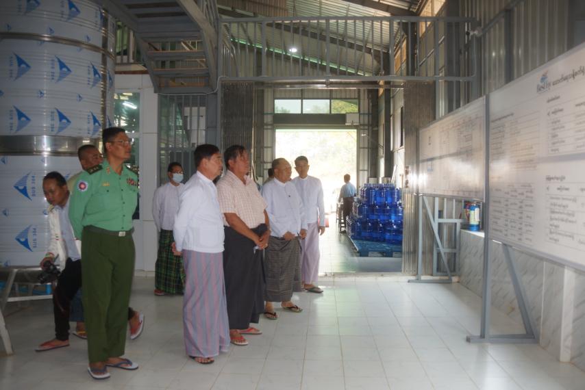 ဆက်လက်ပြီး ပြည်နယ်ဝန်ကြီးချုပ်နှင့်အဖွဲ့သည် အသေးစား အလတ်စား ကုန်ထုတ် လုပ်ငန်းများ ဆောင်ရွက်လျက်ရှိသော ကုဋေစံကွန်ကရစ် အလှဆင်လုပ်ငန်းဆောင်ရွက် နေသောလုပ်ငန်းခွင်နှင့် Best Fly သောက် ရေသန့်စက်ရုံများသို့ သွားရောက် လှည့်လည်ကြည့်ရှု၍ လုပ်ငန်းတာဝန်ခံများနှင့် တွေ့ဆုံကာထုတ် ကုန်များ တိုးချဲ့ထုတ်လုပ်နိုင်ရေးနှင့် ပတ်သက်၍ ပြောရာတာဝန်ခံဆောင်ရွက်သူများ၏ တင် ပြချက်များနှင့် လုပ်ငန်းလိုအပ်ချက်များအား ခရိုင်/မြို့နယ်တာဝန် ရှိသူများနှင့်ပေါင်း စပ်ဆောင်ရွက်ပေးခဲ့ကြောင်း သိရသည်။