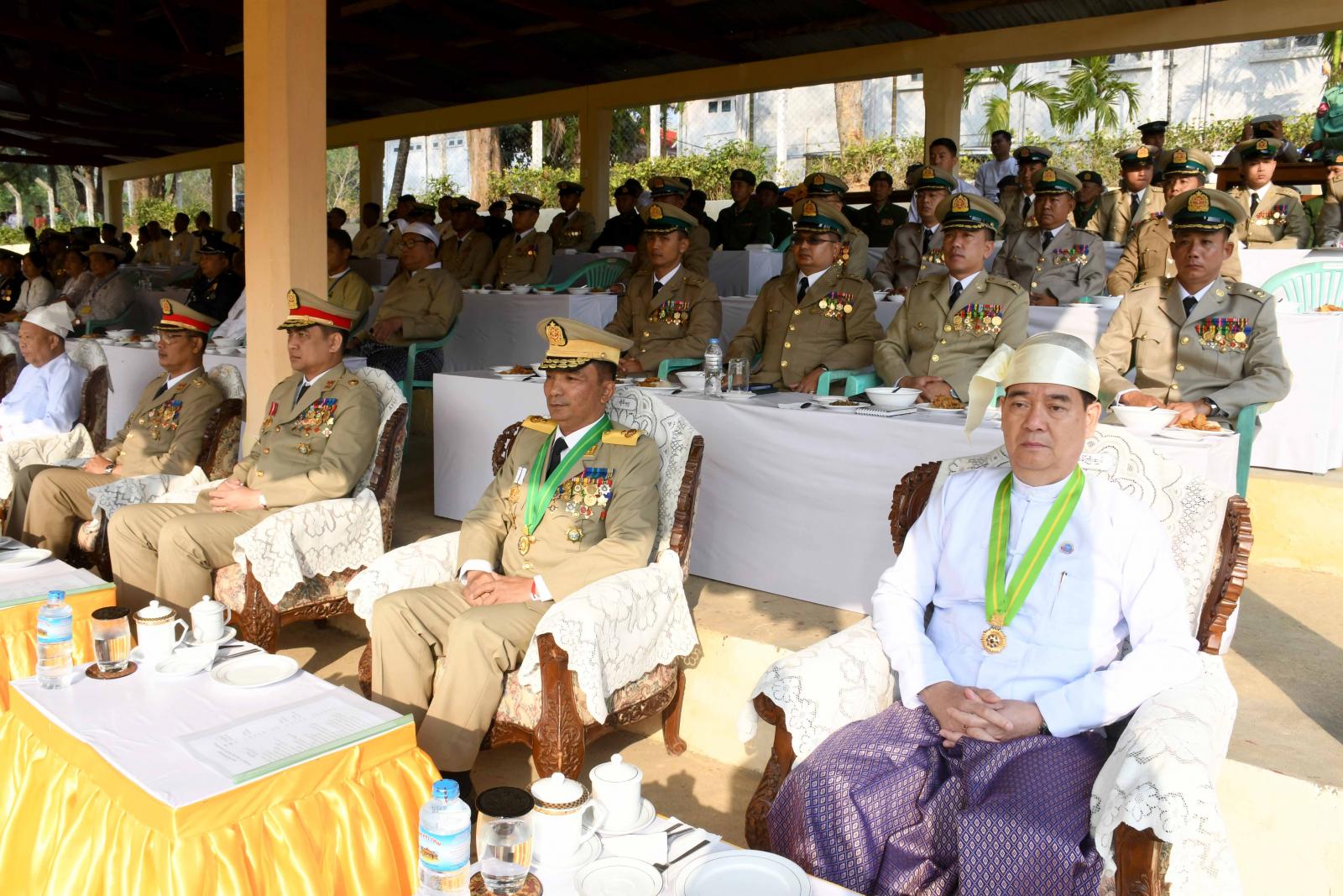 (၇၈)နှစ်မြောက် တပ်မတော်နေ့ စစ်ရေးပြအခမ်းအနားကို ယနေ့နံနက်ပိုင်းက အနောက်ပိုင်းတိုင်းစစ်ဌာနချုပ် စစ်ရေးပြကွင်း၌ကျင်းပရာ ရခိုင်ပြည်နယ်ဝန်ကြီးချုပ် ဦးထိန်လင်း၊ အနောက်ပိုင်း တိုင်းစစ်ဌာနချုပ် တိုင်းမှူး ဗိုလ်ချုပ် ထင်လတ်ဦးနှင့်ဇနီး၊ ပြည်နယ်ဝန်ကြီးများနှင့်ဇနီးများ၊ တိုင်းစစ်ဌာနချုပ်မှ တပ်မတော်အရာရှိ ကြီးများနှင့်မိသားစုဝင်များ၊ ပြည်နယ်၊ ခရိုင်၊ မြို့နယ်အဆင့် ဌာနဆိုင်ရာများ၊ တပ်ရင်း၊ တပ်ဖွဲ့မှူးများ၊ အရာရှိ၊စစ်သည် မိသားစုဝင်များနှင့် စစ်မှုထမ်းဟောင်းအဖွဲ့ဝင်များ တက်ရောက်ကြသည်။