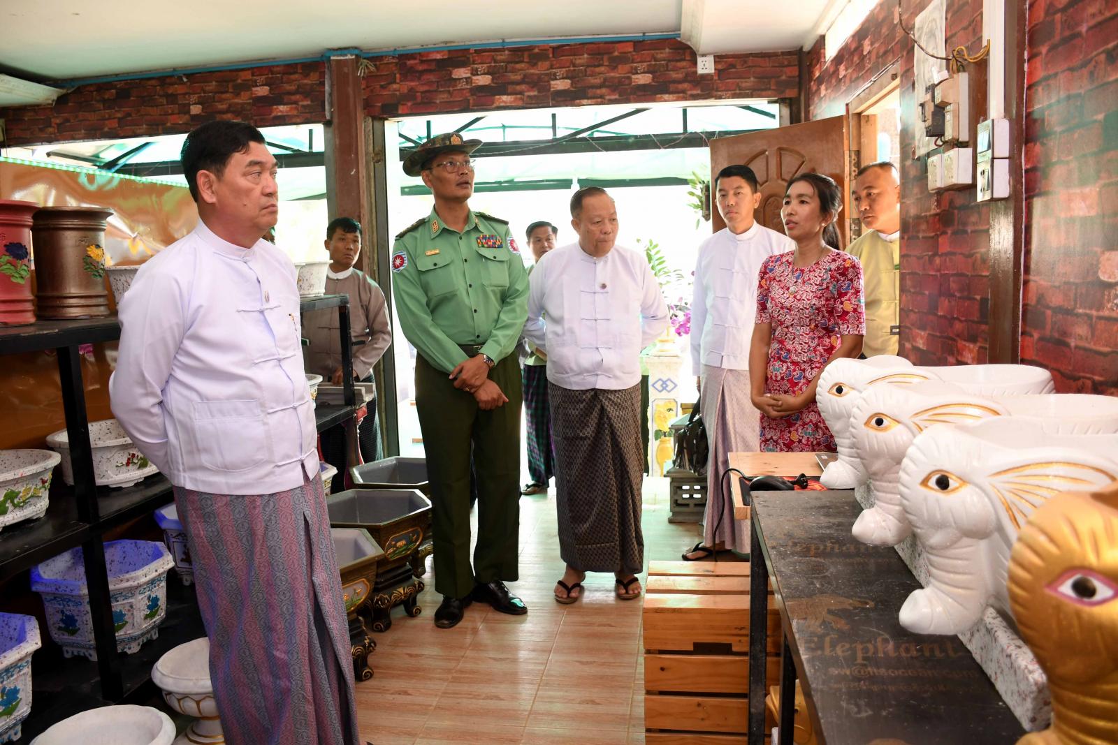 ယင်းနောက် ပြည်နယ်ဝန်ကြီးချုပ်နှင့်အဖွဲ့သည် အမ်းမြို့၊ အမှတ်(၅) ဈေးတောင်ရပ်ကွက်၌ အသေးစား၊ အငယ်စား၊ အလတ်စားစီးပွားရေး MSME လုပ်ငန်းဖြစ်သော ကွန်ကရစ်အလှဆင်ပစ္စည်းလုပ်ငန်းသို့ သွားရောက်ကြည့်ရှုအားပေးကြရာ ကွန်ကရစ်အလှဆင်ပစ္စည်းလုပ်ငန်း တာဝန်ခံက နေအိမ်၊ ခြံဝန်း၊ ကြမ်းခင်းများတွင် အသုံးပြုနိုင်ရန် ထုတ်လုပ်နေမှုအခြေအနေများ၊ ဈေးကွက်အတွင်း ရောင်းချနေမှု အခြေအနေများ၊ ရခိုင်ပြည်နယ်အတွင်း မြို့နယ်များသို့ ဖြန့်ဖြူးရောင်းချနေမှု အခြေ အနေတို့ကို ရှင်းလင်းတင်ပြသည်။ တင်ပြချက်များအပေါ် ပြည်နယ်ဝန်ကြီးချုပ်က ဒေသခံလူငယ် လူရွယ်များ အလုပ်အကိုင် အခွင့်အလမ်းရရှိစေရေးနှင့် ပိုမိုထုတ်လုပ်ရောင်းချနိုင်ရေး လိုအပ်သည်များကို တာဝန်ရှိ သူများနှင့် ပေါင်းစပ်ညှိနှိုင်းပေးခဲ့သည်။