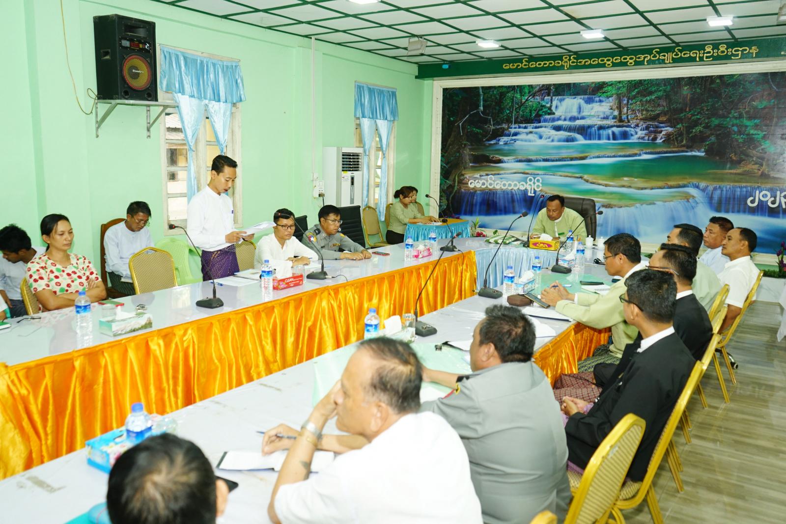 ထို့နောက် မောင်တောမြို့နယ် စီမံအုပ်ချုပ်ရေးအဖွဲ့ဥက္ကဋ္ဌ ဦးကံထွန်းအောင်နှင့် ဘူးသီးတောင်မြို့နယ် အုပ်ချုပ်ရေးမှူး ဦးဇော်ဝင်းတို့က မိမိတို့မြို့နယ်အလိုက် မဟာသင်္ကြန်အောင်မြင်စွာ ကျင်းပနိုင်ရန်အတွက် ကဏ္ဍအလိုက် ဆောင်ရွက်နေသည့် အစီအစဉ်များ၊ မဟာသင်္ကြန်တွင် ဖျော်ဖြေရေးနှင့်ယိမ်းအဖွဲ့များ စီစဉ်ဆောင်ရွက်နေမှုများ၊ လုပ်ငန်းကော်မတီများဖွဲ့စည်းထားရှိမှုနှင့် လုပ်ငန်းတာ၀န်များကို ရှင်းလင်းပြောကြားခဲ့ပြီး တက်ရောက်လာကြသည့် ဌာနဆိုင်ရာများက ဝိုင်းဝန်းဆွေးနွေးတင်ပြကြခဲ့ကြကြောင်း သိရသည်။
