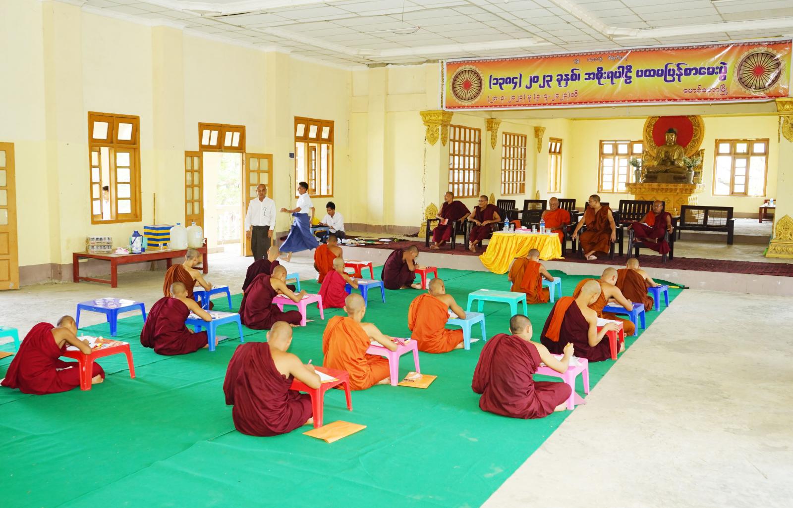 ရခိုင်ပြည်နယ် မောင်တောမြို့၌ ၂၀၂၃ ခုနှစ်၊ အစိုးရပါဠိပထမပြန် စာမေးပွဲကို ယမန်နေ့မွန်းလွဲ ၁၂ နာရီအချိန် သာသနာ့ဗိမာန်တော်ကြီးတွင် သံဃာတော်များက ဖြေဆိုလျက်ရှိကြ သည်။