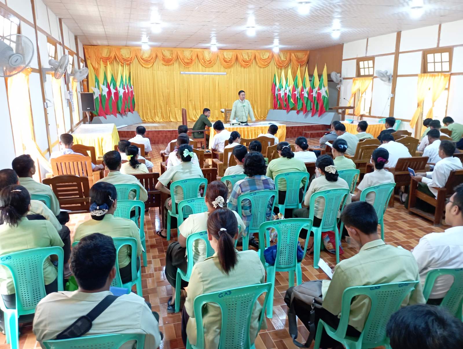 ရခိုင်ပြည်နယ်၊ သံတွဲခရိုင်၊ ဂွမြို့နယ်တွင် မြို့နယ်အဆင့် ဌာနဆိုင်ရာလုပ်ငန်းညှိနှိုင်းအစည်းအဝေးကို ယနေ့နေ့လယ်ပိုင်းက မြို့နယ်အထွေထွေအုပ်ချုပ်ရေးဦးစီးဌာန အစည်းအဝေးခန်းမ၌ကျင်းပခဲ့ရာ မြို့နယ်စီမံအုပ်ချုပ်ရေးအဖွဲ့ဥက္ကဋ္ဌနှင့်အဖွဲ့ဝင်များ၊ မြို့နယ်အဆင့် ဌာနဆိုင်ရာ တာဝန်ရှိသူများ၊ ရပ်/ကျေး အုပ်ချုပ်ရေးမှူးများနှင့် ရပ်/ကျေး စာရေးများတက်ရောက်ခဲ့သည်။