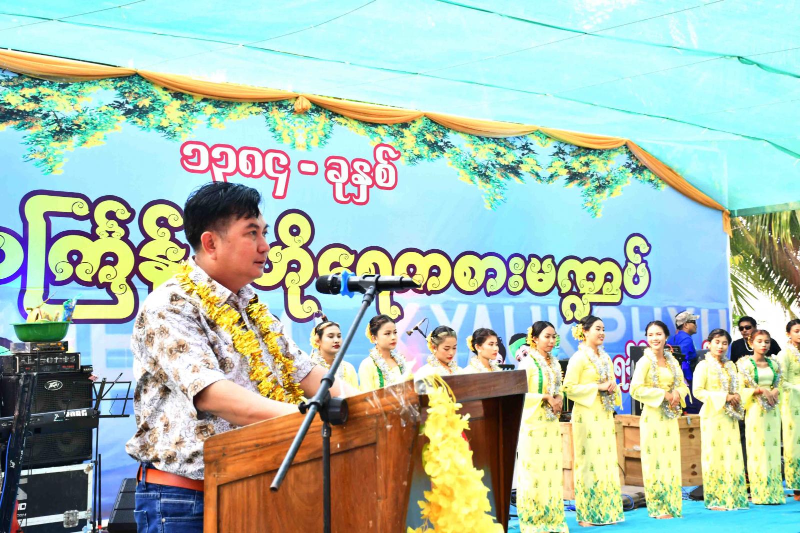 ဖွင့်ပွဲအခမ်းအနားကို ရခိုင့်မင်္ဂလာစည်တော်အဖွဲ့နှင့်အတူ ရခိုင်ရတုတေးအား ရွှေတံဆိပ် ဆုရှင် ဦးဇော်နေညွှန့်မှ သီဆိုဖွင့်လှစ်ပေးပြီးနောက် ခရိုင်စီမံအုပ်ချုပ်ရေးအဖွဲ့ ဥက္ကဋ္ဌ ဦးရဲလင်းမောင်မှ နှစ်သစ်ကူးနှုတ်ခွန်းဆက်စကားပြောကြားခဲ့သည်။