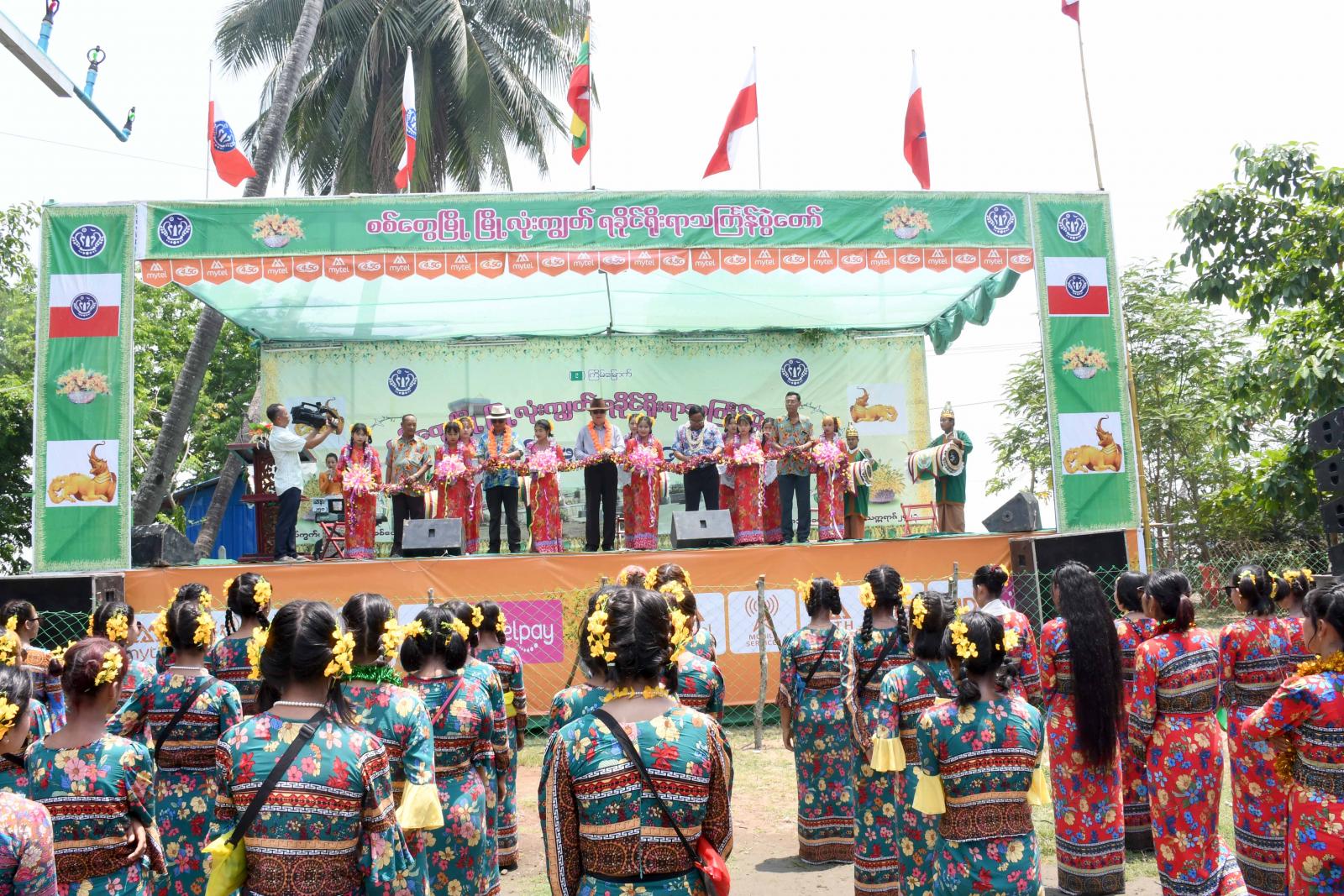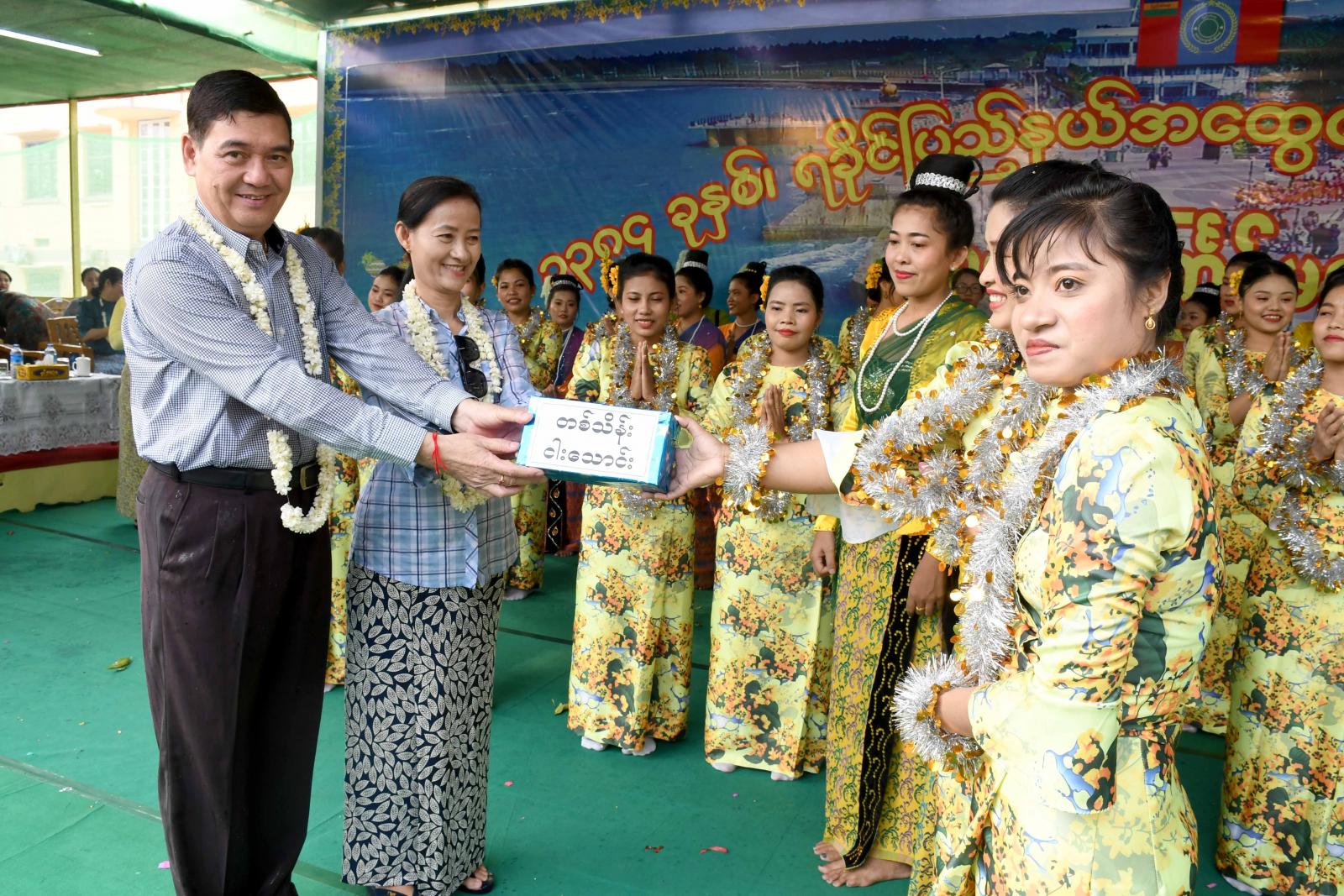 ဦးစွာ ပြည်နယ်ဝန်ကြီးချုပ်နှင့်အဖွဲ့သည် ရခိုင်ပြည်နယ် အထွေထွေအုပ်ချုပ်ရေးဦးစီးဌာန၊ မဟာသင်္ကြန်မဏ္ဍပ်သို့ သွားရောက်ပြီး သင်္ကြန်မဏ္ဍပ်အား ပြည်နယ်ဝန်ကြီးချုပ် ဦးထိန်လင်း၊ အနောက်ပိုင်းတိုင်းစစ်ဌာနချုပ်တိုင်းမှူး ဗိုလ်ချုပ်ထင်လတ်ဦးနှင့် တာဝန်ရှိသူများက ဖဲကြိုးဖြတ် ဖွင့်လှစ်ပေးကြသည်။ ဆက်လက်၍ ယိမ်းအကအဖွဲ့များက မြနန္ဒာသီချင်းဖြင့် ကပြဖျော်ဖြေကြရာ ပြည်နယ်ဝန်ကြီးချုပ်နှင့်ဇနီး တာဝန်ရှိသူများက အတာရေများဖြင့်ပက်ဖြန်းကြသည်။ ယင်းနောက် နိုင်ငံကျော်အဆိုတော်များ၊ တေးသံရှင်များနှင့် ယိမ်းအကအဖွဲ့များ တေးသီချင်းများဖြင့် သီဆိုကပြ ဖျော်ဖြေကြရာ ပြည်နယ်ဝန်ကြီးချုပ်နှင့်ဇနီး တိုင်းမှူးနှင့်ဇနီးတို့က ကပြဖျော်ဖြေကြသော ယိမ်းအဖွဲ့များအား ဂုဏ်ပြုဆုငွေများပေးအပ်ခဲ့ကြသည်။