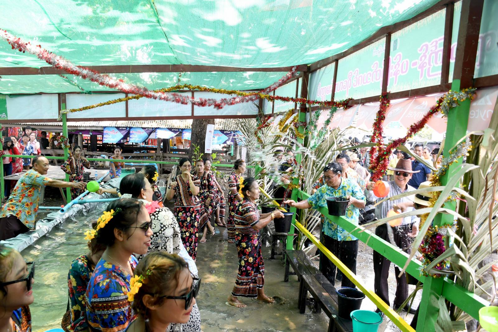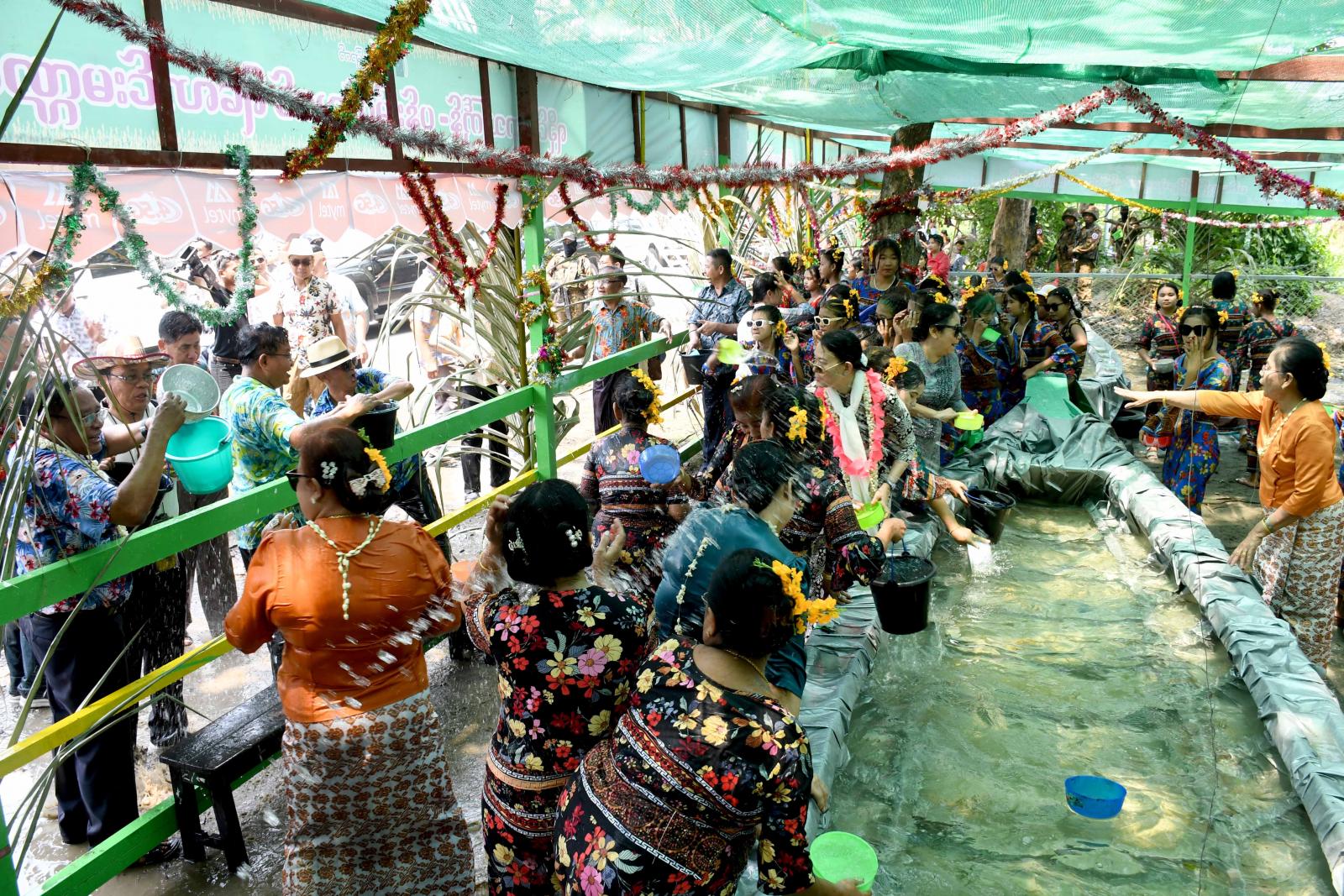 ဆက်လက်၍ ပြည်နယ်ဝန်ကြီးချုပ်နှင့်ဇနီး၊ တိုင်းမှူးနှင့်ဇနီး၊ ပြည်နယ်တရားလွှတ်တော် တရားသူကြီးချုပ် ဒေါ်ဝါဝါထွန်း၊ ပြည်နယ်ဝန်ကြီးများနှင့်ဇနီးများသည် ပန်းမြတ်သဇင်ရခိုင်ရိုးရာ ရီလောင်းမဏ္ဍပ်မှ မဏ္ဍပ်ရှင်မများနှင့်အတူ ရခိုင်ရိုးရာအစဉ်အလာမပျက် လောင်းလှေများဖြင့် ရေပက်ကစားကြသည်။
