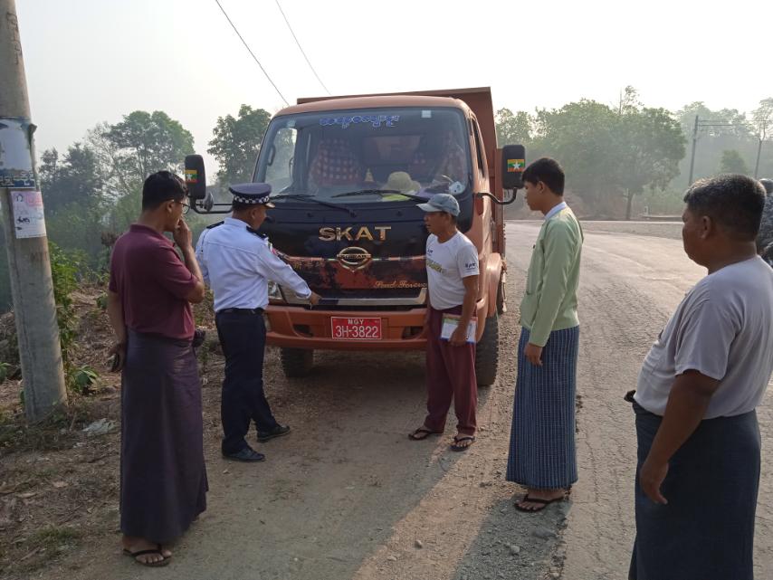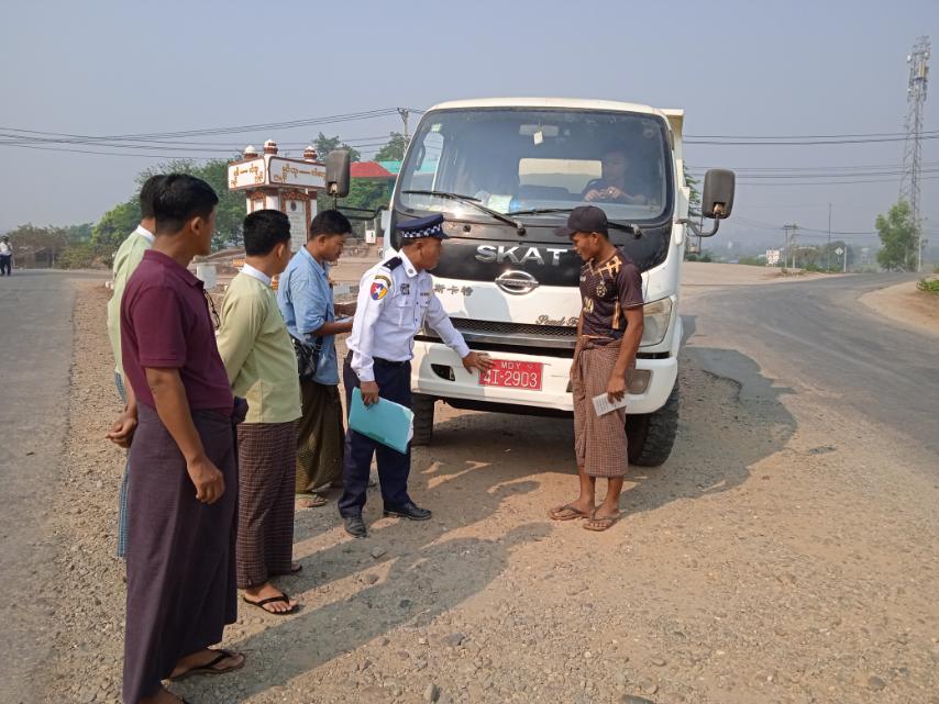 သို့ဖြစ်ပါ၍ အမ်းမြိုနယ်၌ ရန်ကုန်-စစ်တွေ ကားလမ်း အမ်းအပိုင်း ကျော်ဇံဆီဆိုင်ကုန်းရှေ့ လမ်းဆုံတွင် အမှတ်(၂၁)ယာဉ် ထိန်း ရဲတပ်ဖွဲ့စု(ကျောက်ဖြူ) လက်အောက်ရှိ အမ်းတပ်ဖွဲ့ စိတ်မှူး ဒုရဲအုပ် သန့်ဇင်ဦး ဦးဆောင်၍တပ်ဖွဲ့ဝင် ၃ ဦး၊ အမ်းမြို့မရဲစခန်းမှ ရဲဒုတပ်ကြတ် နိုင်မင်းနှင့်တပ်ဖွဲ့ဝင်များ၊ မြို့နယ်ထွေထွေအုပ်ချုပ်ရေးဦးစီးဌာနမှ ဒုတိယဦးစီး ဦးဝင်းကိုနိုင်နှင့် ဝန်ထမ်းများ၊အောက်ရွာ ကျေးရွာအုပ်စုအုပ်ချုပ်ရေးမှူး ဦးတင်မြင့်နှင့် ရာအိမ်မှူးများ ပါဝင်သည့် ပူးပေါင်းအဖွဲ့က မော်တော်ယာဉ်(၄၀)စီးအား စစ်ဆေးဆောင်ရွက်ခဲ့ရာ ဖောင်း ကြွနံပါတ်ပြားအသစ်များ ပြောင်းလဲတပ်ဆင်ခြင်း မပြုရသေးသော မော်တော်ယာဉ်(၁၀)စီးကို စစ်ဆေးတွေ့ရှိရသဖြင့် မော်တော်ယာဉ် မောင်းနှင်သူများအား အချိန်မှီကုန်းလမ်း ပို့ဆောင်ရေးနှင့်ညွန်ကြားမှုးဦးစီးဌာသို့ သွားရောက်၍ ဖောင်းကြွနံပါတ်ပြားအသစ်များ ပြောင်းလဲတပ်ဆင်အသုံးပြုကြရန် အသိပညာပေးဆောင်ရွက်ခဲ့ကြောင်း သိရသည်။