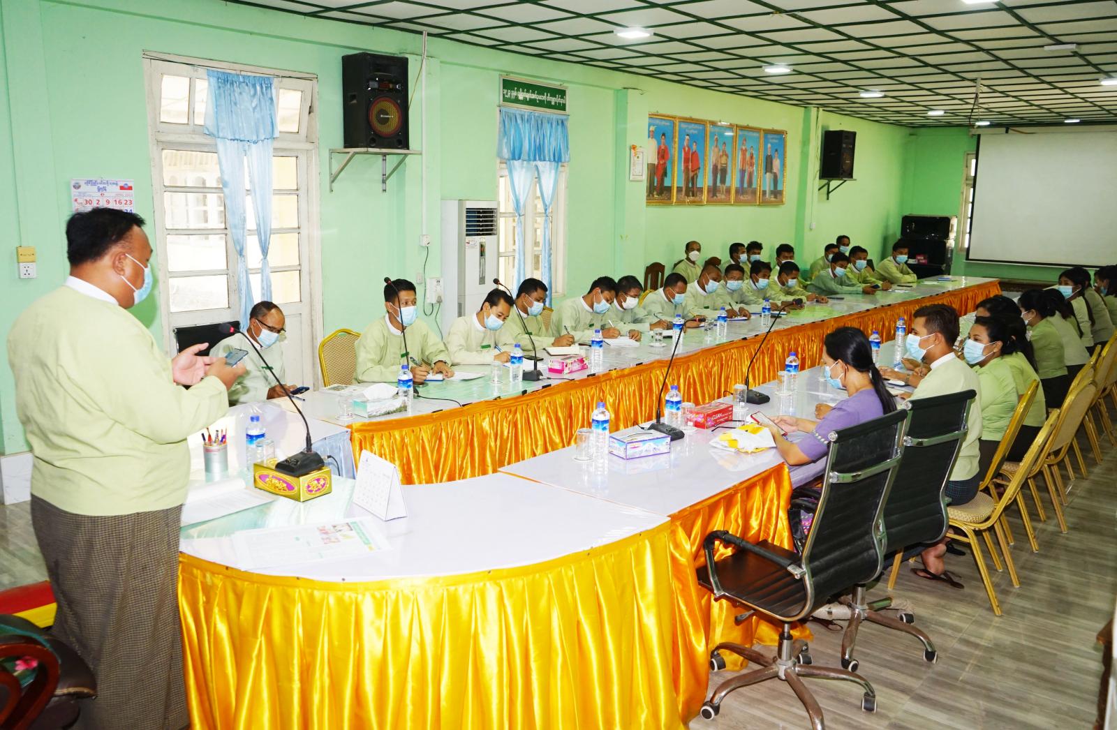 ရှေးဦးစွာ ခရိုင်စီမံအုပ်ချုပ်ရေးအဖွဲ့ဉက္ကဋ္ဌ ဦးနေဦးက အသိပညာပေးဆွေးနွေးပွဲပြုလုပ်ရခြင်းနှင့် ပတ်သတ်၍ ရှင်းလင်းပြောကြားပြီး မြို့နယ်ကုသရေးဦးစီးဌာနမှူး ဒေါက်တာနုကေသီစံက အပူဒဏ်အန္တရာယ်နှင့် ရင်သားကင်ဆာအကြောင်း အသိပညာပေး ဟောပြောရာတွင် ယခုအခါ ရာသီဉတုပြောင်းလဲမှုကြောင့် အလွန်ပူပြင်းလာခြင်း၊ အပူဓာတ်ကြောင့် ခန္ဓာတွင် ရေဓာတ်နှင့် ဆားဓာတ်ကုန်ခမ်းခြင်း၊ ရာသီဉတုပူပြင်းမှုကြောင့် ခန္ဓာကိုယ်တွင် ရှေးပြေးလက္ခဏာများ ဖြစ်ပေါ်မှုများ၊ နေပူထဲ မဖြစ်မနေသွားလာလိုလျှင် အကာအကွယ်ဖြင့် သွားလာကြရန်၊ မတော်တဆ သတိလစ် ခြင်းများဖြစ်ပေါ်လာပါက ရှေးဦးပြုစုနည်းဖြင့် စောလျှင်စွာကုသပြီး နီးစပ်ရာဆေးရုံ၊ ဆေးခန်းများသို့ ပို့ဆောင်ကြရန် လိုအပ်ကြောင်းနှင့် ရင်သားကင်ဆာအကြောင်း အသိပညာပေးဆွေးနွေးရာတွင် ရင်သားကင်ဆာဖြစ်ပေါ်မှုအခြေအနေ၊ ကနဦး ဆန်းစစ်နိုင်သည့် လက္ခဏာများ၊ ရင်သားကင်ဆာဖြစ်ပွားတတ်သည့် အသက်အရွယ်များ၊ ရောဂါဖြစ်နေသည်ဟု သံသယရှိပါက ဆေးရုံတွင် အမြန်ဆုံးပြသကာ ဆေးဝါးကုသမှုခံယူကြရန်လိုကြောင်း ဆွေးနွေးပြောကြားခဲ့ပြီး ဆွေးနွေးပွဲသို့ ခရိုင်အထွေထွေအုပ်ချုပ်ရေးဦးစီးဌာနမှ ဝန်ထမ်းများတက်ရောက်ခဲ့ကြကြောင်း သိရသည်။