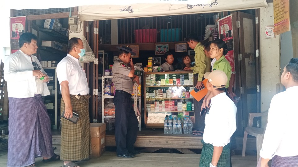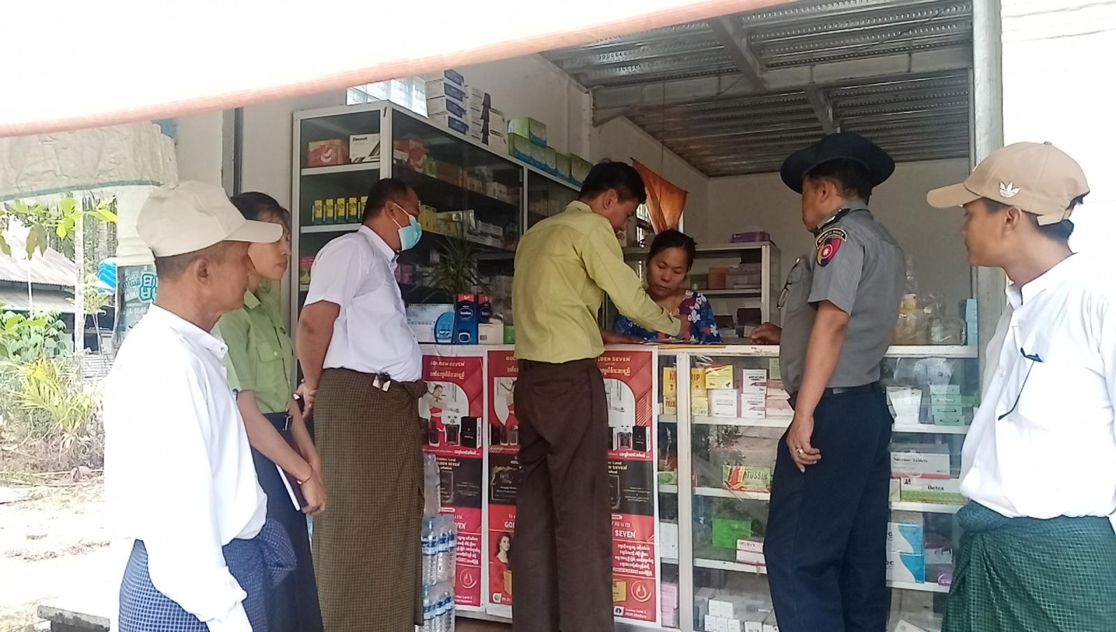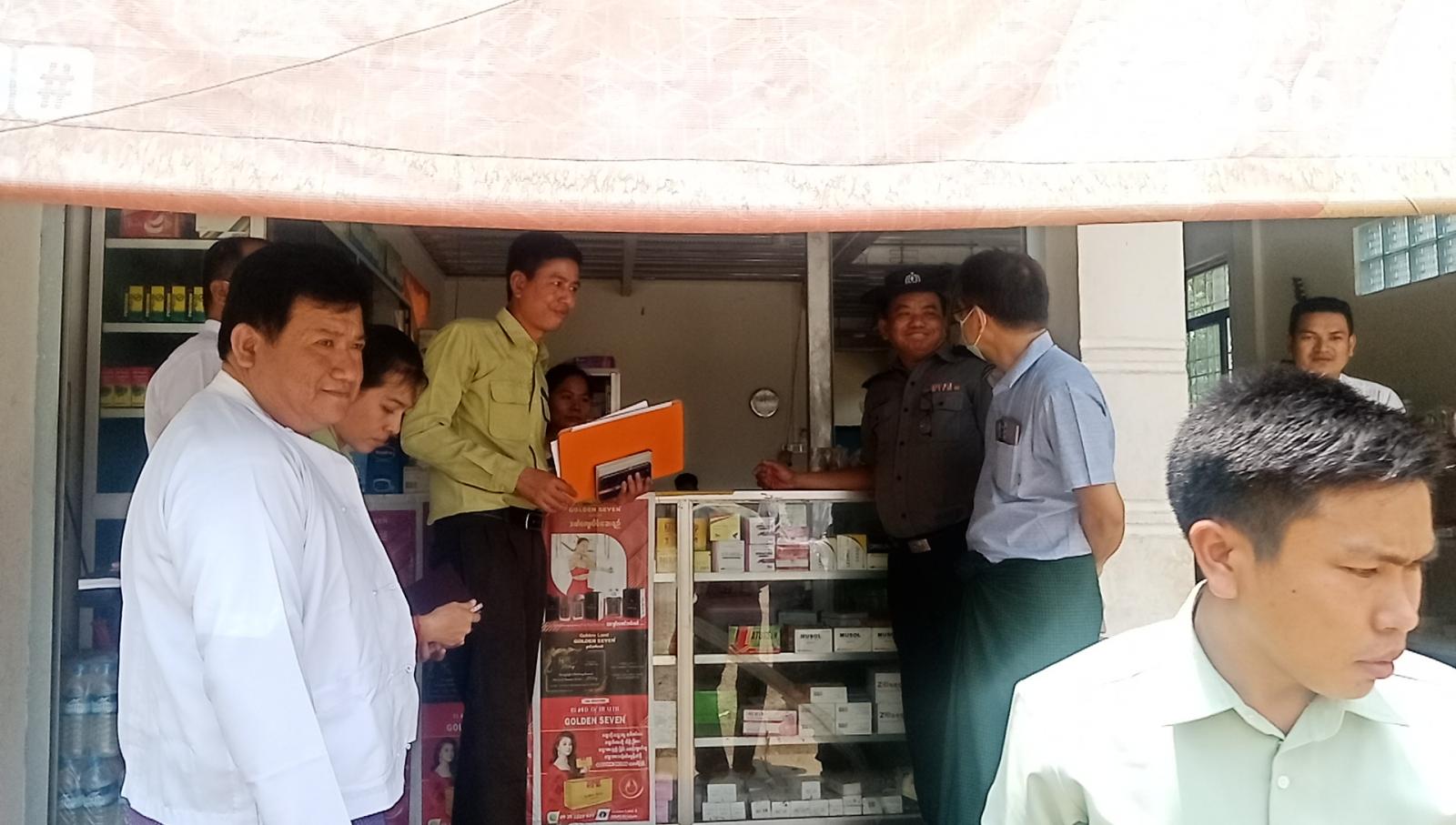 အဆိုပါတရားမဝင်ကုန်သွယ်မှုတိုက်ဖျက်ရေးအဖွဲ့ဥက္ကဋ္ဌ မြို့နယ်စီမံအုပ်ချုပ်ရေးအဖွဲ့ဥက္ကဋ္ဌ ဦးစိုးမင်းထက်နှင့်အဖွဲ့ဝင်များ မြို့နယ်ကျန်မာရေးဦးစီးဌာနမှူး ဒေါက်တာ အောင်ကျော်မိုး နှင့်ပူးပေါင်းအဖွဲ့တို့က အမှတ်(၄)စျေးတောင်ရပ်ကွက် ဦးထွန်းမောင် ဆေးဆိုင်အမှတ်(၅) ဈေးရပ်ကွက်ရှိ ဆေးဆိုင်များသို့ သွားရောက်၍တရားမဝင်ဆေးဝါးများစျေးကွက်အတွင်းရောက်ရှိမှုရောင်း ဝယ်ဖြန့်ဖြူးမှုမရှိ စေရေးနှင့်သက်တန်းလွန်ဆေးဝါးများရောင်းချမှု မရှိစေရေးကွင်းဆင်းစစ်ဆေး ဆောင်ရွက်ခဲ့သည်။