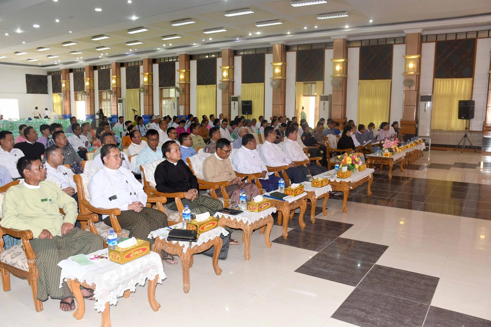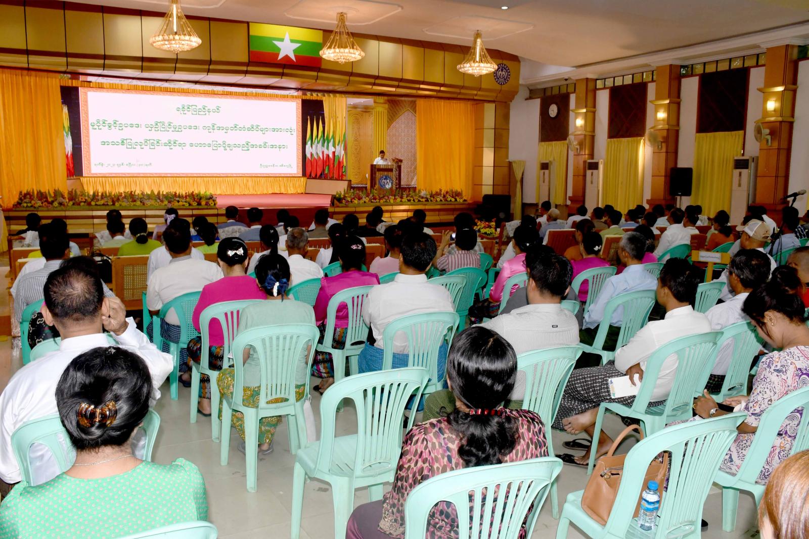 ရခိုင်ပြည်နယ် စစ်တွေမြို့၌ ကုန်အမှတ်တံဆိပ် မှတ်ပုံတင်ခြင်းဆိုင်ရာ အသိပညာပေးဆွေးနွေးပွဲကို ယမန်နေ့နံနက်ပိုင်းက ဦးဥတ္တမခန်းတွင် ကျင်းပရာ ရခိုင်ပြည်နယ်ဝန်ကြီးချုပ် ဦးထိန်လင်း၊ ပြည်နယ်တရားသူကြီးချုပ် ဒေါ်ဝါဝါထွန်း၊ ပြည်နယ်ဝန်ကြီးများ၊ ဌာနဆိုင်ရာတာဝန်ရှိသူများနှင့်အတူ လုပ်ငန်းရှင်းများတက်ရောက်ကြကြောင်း သိရသည်။