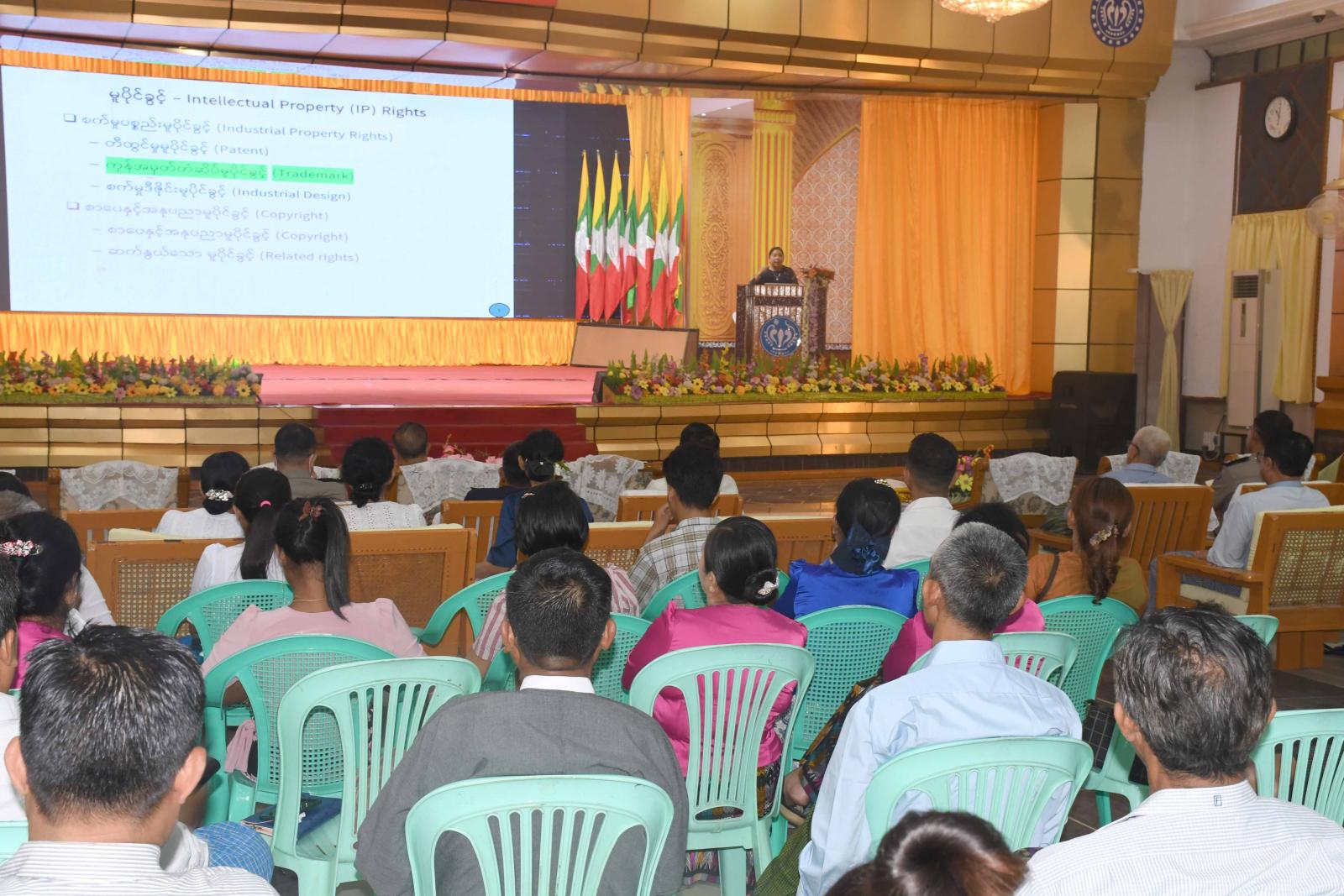 ဆက်လက်ပြီး မူပိုင်ခွင့်ဦးစီးဌာန၊ ညွှန်ကြားရေးမှူးချုပ် ဒေါက်တာ မိုးမိုးသွယ်က မူပိုင်ခွင့်ဥပဒေ အာဏာသက်ဝင်ခြင်းနှင့်စပ်လျဉ်း၍ ရှင်းလင်းပြောကြားပြီး မူပိုင်ခွင့်ဦးစီးဌာန၊ ညွှန်ကြားရေးမှူး ဒေါက်တာ စိမ့်သန္တာထွန်းက ကုန်အမှတ်တံဆိပ်မူပိုင်ခွင့် ပတ်သက်၍ ရှင်းလင်းပြောကြားသည်။ ထို့နောက် ဥပဒေပညာရှင် ဦးသန်းမောင်က ဥပဒေများနှင့် ပတ်သက်၍ ဆွေးနွေးပြီး တက်ရောက်လာကြသည့် လုပ်ငန်းရှင်းများက သိရှိလိုသည်များကို မေးမြန်းကြရာ တာဝန်ရှိသူများက ပြန်လည်ဖြေကြားကြကာ စုပေါင်းမှတ်တမ်းတင် ဓာတ်ပုံရိုက်ကြသည်။