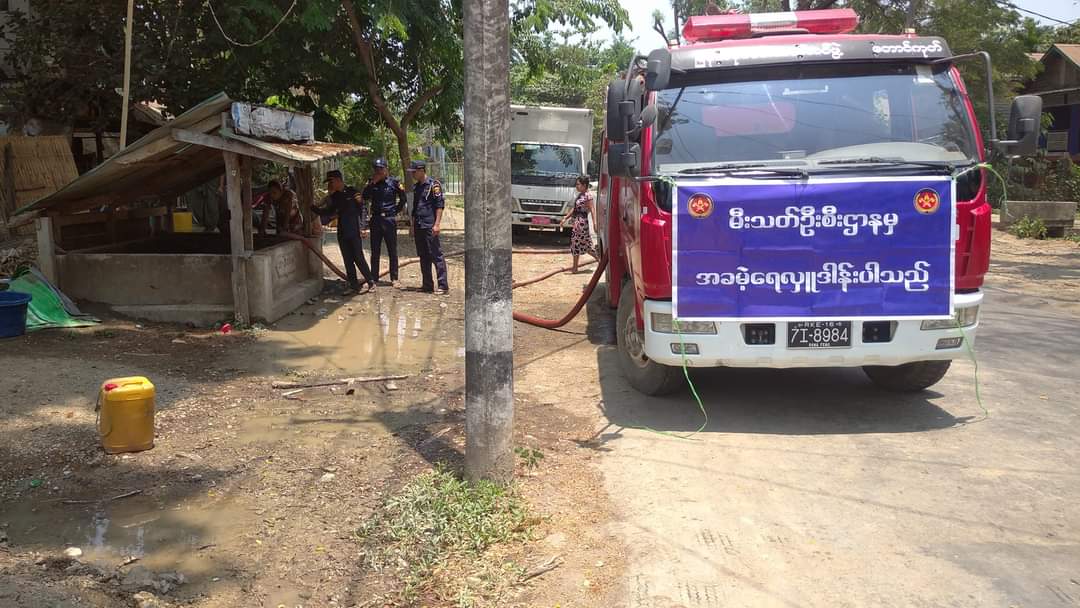 သောက်သုံးရေများ လှူဒါန်းရာတွင် မီးသတ်ဦးစီးဌာနမှ ဒုတိယမီးသတ်ဦးစီးမှူး ဦးခင်ကျော်လင်းနှင့် တပ်ဖွဲ့ဝင်များက ရေသယ်ယာဉ်တစ်စီးဖြင့် သောက်သုံးရေ အခက်အခဲရှိသည့် ရပ်ကွက်များသို့ သွားရောက်၍ ရပ်ကွက်များရှိ အများသုံးရေစုကန်များတွင် ရေဖြည့်လှူဒါန်းခြင်းများကို ဆောင်ရွက်ခဲ့ကြပြီး သောက်သုံးရေ ရှားပါးသည့် အခြားရပ်ကွက်၊ ကျေးရွာများသို့လည်း ဆက်လက်ဖြန့်ဝေပေးသွားမည်ဖြစ်ကြောင်း သိရသည်။