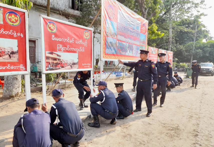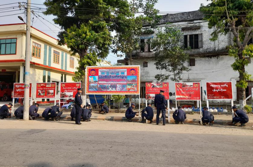 ရခိုင်ပြည်နယ် မောင်တောမြို့၌ မေလ (၅)ရက်နေ့တွင် ကျရောက်မည့် (၇၇)နှစ်မြောက် စိန်ရတု အထိမ်းအမှတ် မြန်မာနိုင်ငံမီးသတ်တပ်ဖွဲ့နေ့ကို ကြိုဆိုဂုဏ်ပြုသောအားဖြင့် မီးသတ်စခန်းမှ မီးသတ်တပ်ဖွဲ့ဝင်များက အသိပညာပေး ဗီနိုင်းများ စိုက်ထူခြင်းကို ယနေ့ ညနေ ၄ နာရီအချိန်ခန့်က မြို့နယ်မီးသတ်ဦးစီးဌာန ရုံးရှေ့တွင် စိုက်ထူခဲ့ကြသည်။