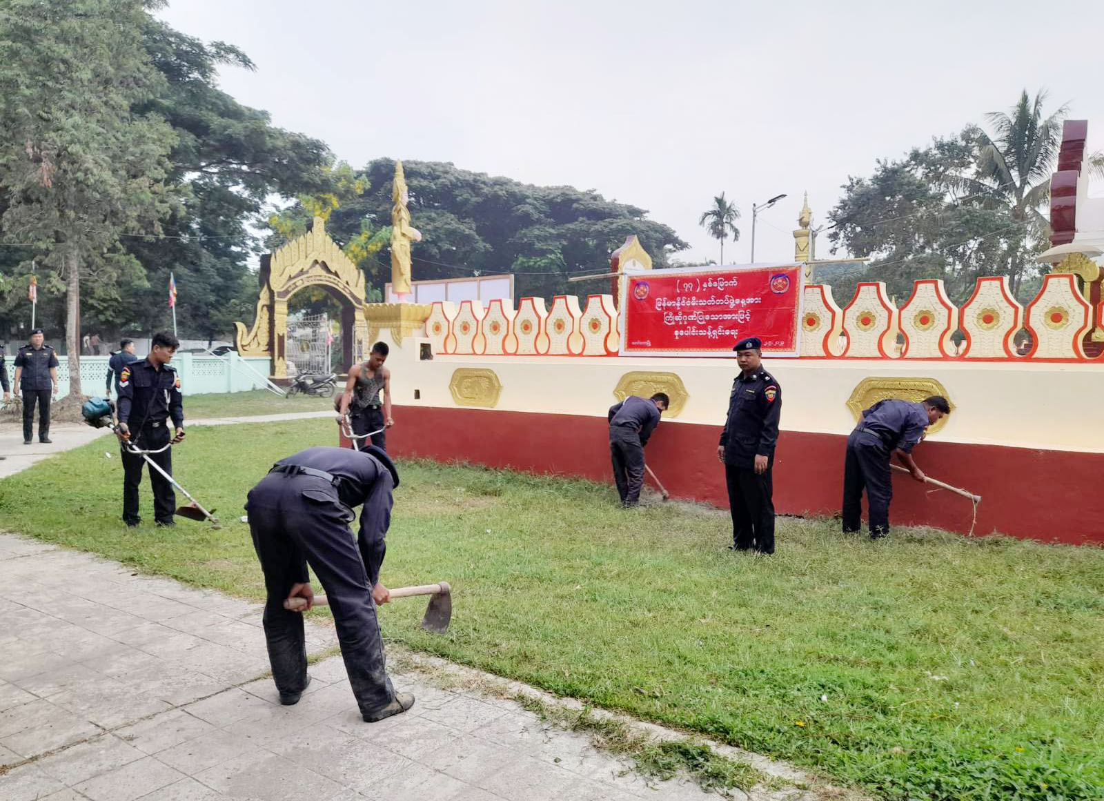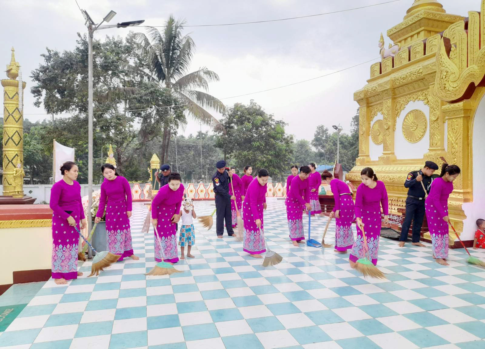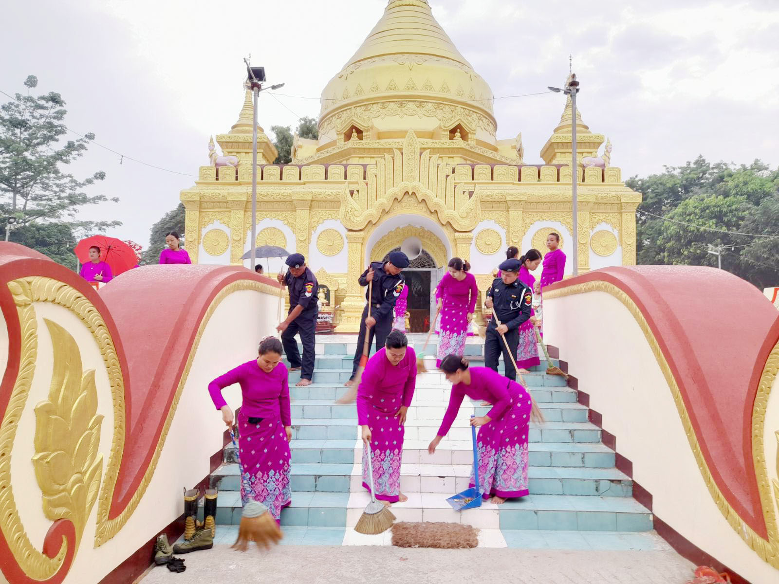 ထိုသို့ ဆောင်ရွက်ရာတွင် ခရိုင်မီးသတ်ဦးစီးမှူး လက်ထောက်ညွန်ကြားရေးမှူး ဦးသန့်ဇင်နှင့် မြို့နယ်မီးသတ် ဦးစီးမှူး ဦးထွန်းရွှေခိုင်တို့ ဦးဆောင်၍ ခရိုင်/မြို့နယ် မီးသတ်စခန်းများမှ မီးသတ်တပ်ဖွဲ့ဝင်များ၊ ခရိုင်/မြို့နယ် မိသားစုစည်းရုံးရေးနှင့် စည်းကမ်းထိန်းသိမ်းရေးကော်မတီဥက္ကဋ္ဌနှင့် မိသားစုဝင်များ စုစုပေါင်းအင်အား ၈၀ ခန့်က မြို့ဦးရွှေစည်း ခုံစေတီတော်ကြီးတွင် ဘုရားဖူး ပြည်သူများ စိတ်အေး ချမ်းသာစွာ ဖူးမျှော်နိုင်ရေးအတွက် စေတီအနီးအနားရှိ အမှိုက်သရိုက်များကောက်ယူခြင်း၊ မြက်ပင်၊ ပေါင်ပင်များအား ခုတ်ထွင်ရှင်းလင်းခြင်း၊ စေတီတော် ရင်ပြင်အနီး တံမြက်စည်းလှဲခြင်း၊ ဘုရားပရဝဏ်အတွင်း/အပြင် များတွင်သန့်ရှင်းရေးပြုလုပ်ခြင်း၊ စေတီတော်အနီးရှိ သုံးရေကန်အား ရေဆေးကြောခြင်း၊ ရေကန်အထဲရှိ အမှိုက်များ အားရှင်းလင်းခြင်းများကို စုပေါင်းဆောင်ရွက်ခဲ့ကြကြောင်း သိရသည်။