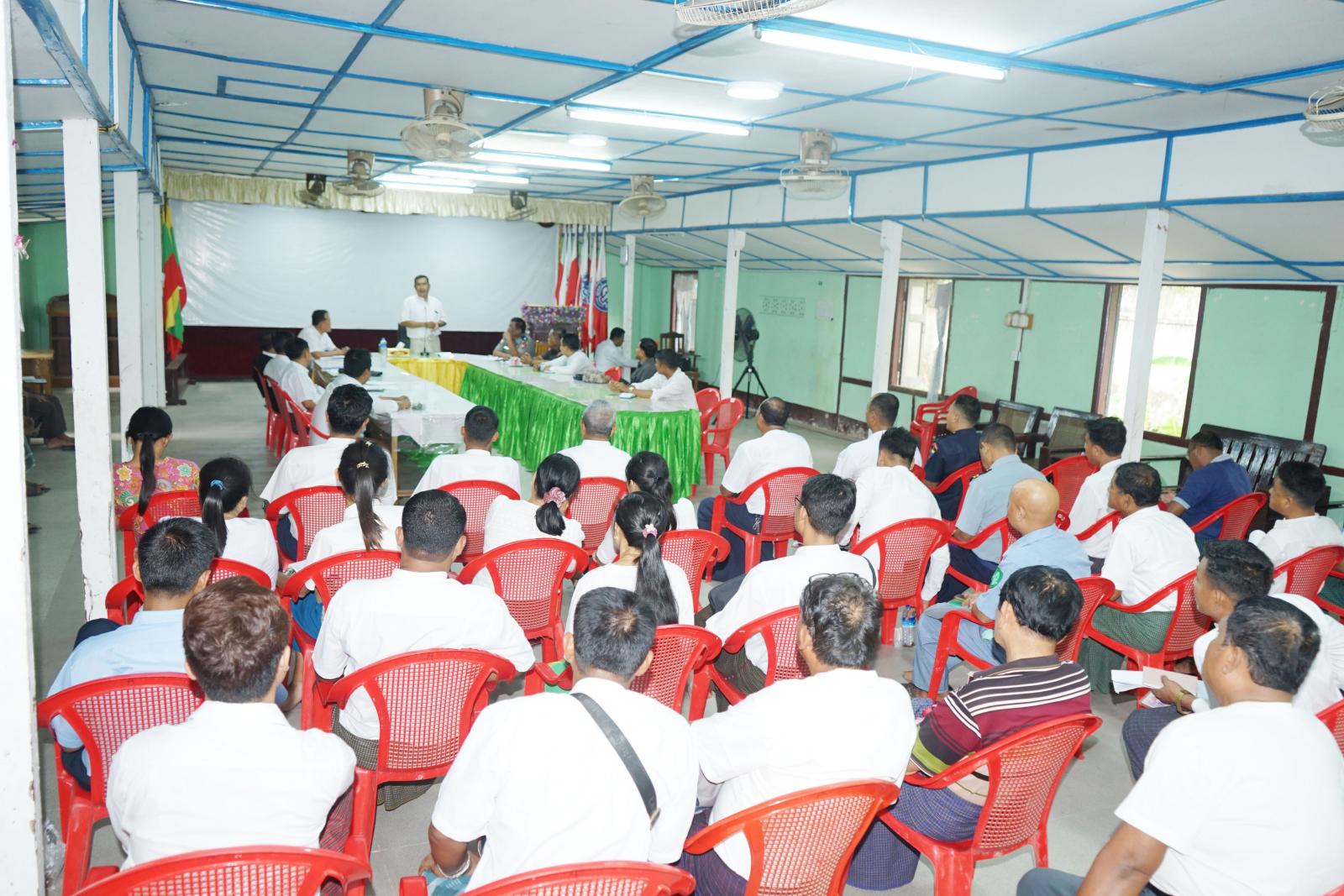 ရခိုင်ပြည်နယ်၊ မောင်တောမြို့၌ မြို့နယ်အဆင့်ဌာနဆိုင်ရာများ၏ လုပ်ငန်းညှိနှိုင်းအစည်းအဝေးကို ယနေ့နေ့လယ် ၂ နာရီအချိန် မြို့နယ်အထွေထွေအုပ်ချုပ်ရေးဦးစီးဌာန အစည်းအဝေးခန်းမတွင် ပြုလုပ်ခဲ့သည်။