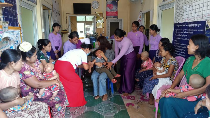အဆိုပါ ပုံမှန်ကာကွယ်ဆေးထိုးနှံ တိုက်ကျွေးခြင်းလုင်ငန်းများဆောင်ရွက်ရာတွင် ကိုယ်ဝန်ဆောင်မိခင်နှင့် အသက်(၂)နှစ်အောက်ကလေးများအား အဆုတ်ရောဂါကာကွယ်ဆေး၊ ငါး မျိုးစပ်၊ ဆုံဆို့၊ ကြက်ညှာ၊ အသည်းရောင်အသားဝါ၊ ဦးနှောက်အမြှေးရောင်၊ နမိုးနီးယား ကာကွယ် ဆေး၊ ပိုလီယိုသောက်ဆေးနှင့်ထိုးဆေး၊ မေးခိုင်ရောဂါ ကာကွယ်ဆေး၊ ဝမ်းရောဂါကာကွယ်ဆေးများ ထိုးနှံတိုက်ကျွေးခြင်းကို အလှည့် ကျစနစ်ဖြင့် ရပ်ကွက်/ကျေးရွာများသို့ ကွင်းဆင်း၍ ကျန်းမာရေးဝန်ထမ်းများကအကြိမ်ရေအလိုက် ထိုးနှံပေးလျက်ရာ မြို့နယ်မိခင်နှင့်ကလေးစောင့်ရှောက်ရေးအသင်းဥက္ကဋ္ဌနှင့် အဖွဲ့ဝင်များကာကွယ်ဆေးထိုးနှံရန် ရောက်ရှိလာသူများအား ကျန်းမာရေးအသိပညာပေး လက်ကမ်းစာစောင်များအား ဖြန့်ဝေကာ ကာကွယ်ဆေးထိုးနှံပေးခြင်းအား ကူညီဆောင်ရွက်ပေးလျက်ရှိကြောင်း သိရသည်။
