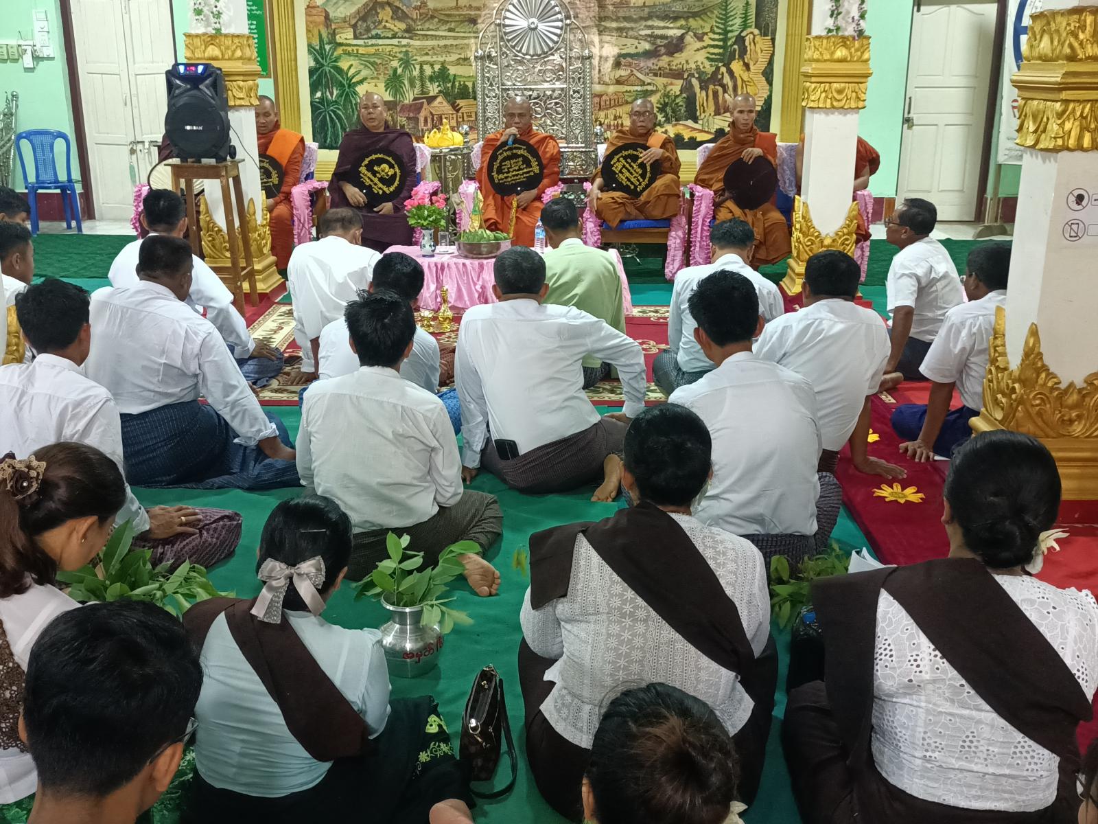 အခမ်းအနားတွင် မြို့နယ်သံဃနာယကဆရာတော်ကြီးများနှင့် ဧည့်ပရိသတ်များက နမောတဿ(၃)ကြိမ်ရွတ်ဆို၍ အခမ်းအနားကို ဖွင့်လှစ်ပေးသည်။
