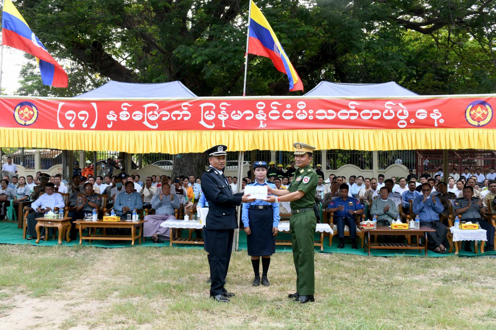 ယင်းနောက် တိုင်းမှူးက မီးသတ်တပ်ဖွဲ့ဝင်များအတွက် ဂုဏ်ပြုဆုငွေများ ပေးအပ်ချီးမြှင့်ခဲ့ကြောင်း သိရသည်။