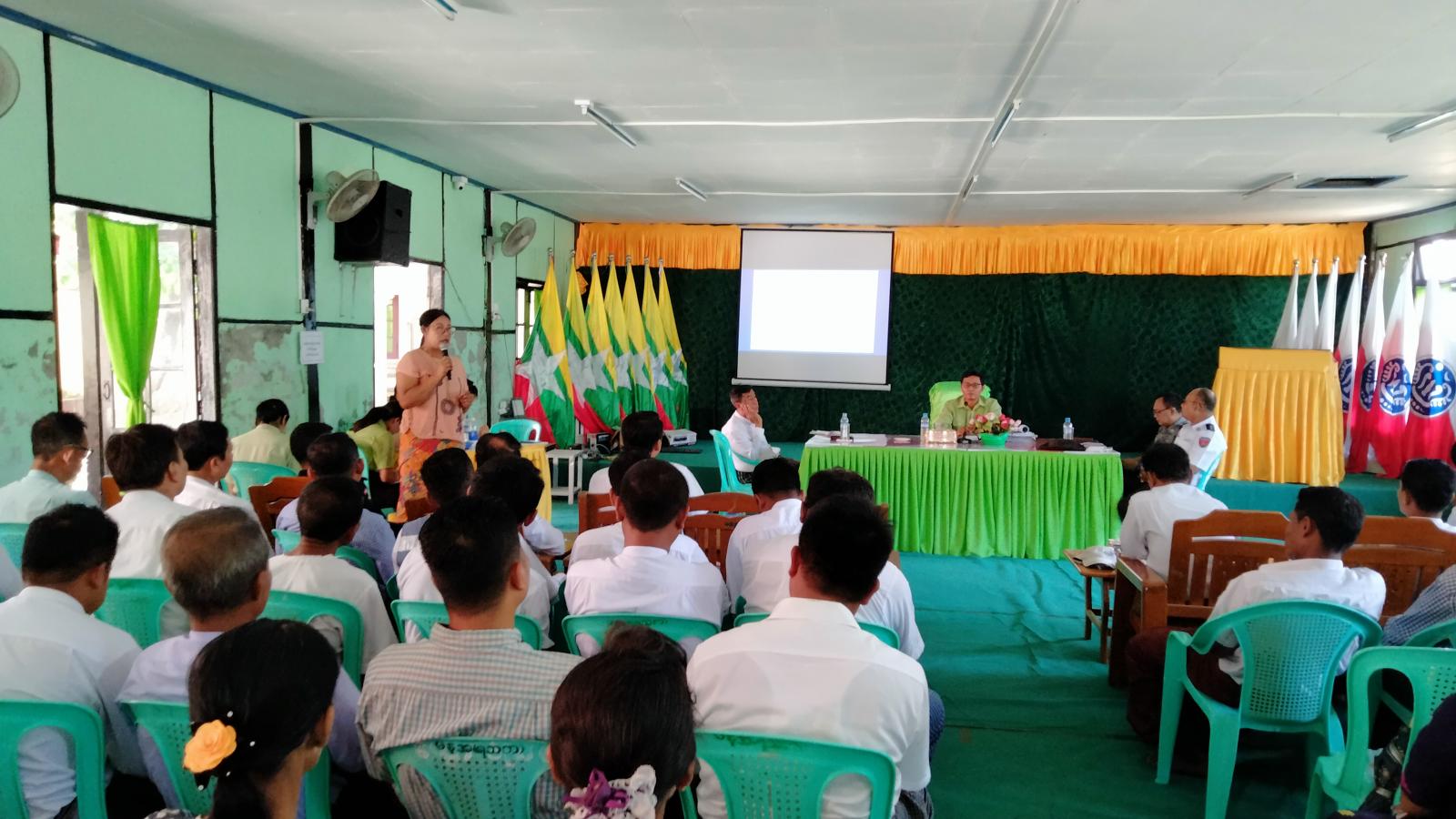 အဆိုပါအစည်းအဝေးသို့ မြို့နယ်စီမံအုပ်ချုပ်ရေးအဖွဲ့ဥက္ကဌ ဦးနိုင်လင်းထက်နှင့်အဖွဲ့ဝင်များ၊ မြို့နယ်အဆင့်ဌာနဆိုင်ရာများ၊ လူမှုရေးအဖွဲ့ဝင်များ၊ ရပ်ကွက်/ကျေးရွာ အုပ်ချုပ်ရေးမှူးများနှင့် စာရေးများ၊စစ်ဘေးရှောင်စခန်းကော်မတီဝင်များ တက်ရောက်ခဲ့ပြီး လူမှုဝန်ထမ်း၊ကယ်ဆယ်ရေးနှင့် ပြန်လည်နေရာချထားရေးဝန်ကြီးဌာနမှ ထုတ်ဝေသည့် မုန်တိုင်းဘေးပညာပေးလက်ကမ်းစာစောင်များကို လူမှုဝန်ထမ်း၊ကယ်ဆယ်ရေးနှင့် ပြန်လည်နေရာချထားရေးဝန်ကြီးဌာနမှ ဝန်ထမ်းများနှင့် ပြန်ကြားရေးနှင့်ပြည်သူ့ဆက်ဆံရေးဦးစီးဌာနဝန်ထမ်းများက ပူးပေါင်းပြီး ဖြန့်ဝေပေးခဲ့ကြကြောင်း သိရသည်။