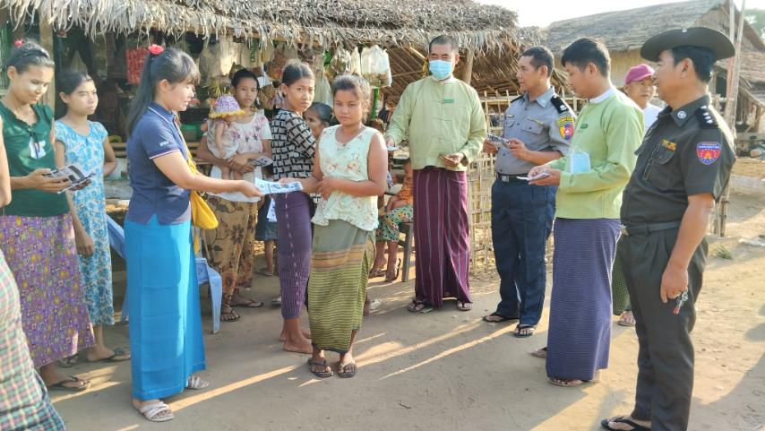 အသိပညာပေးလက်ကမ်းစာစောင်တွင် လူမှုဝန်ထမ်း၊ ကယ်ဆယ်ရေးနှင့် ပြန်လည် နေရာချထားရေးဝန်ကြီးဌာနမှ ထုတ်ဝေသည့် မုန်တိုင်းအတွက် ကြိုတင်ပြင်ဆင်ရန်အချက်များ၊ မုန်တိုင်းသတိပေးချက်ရလျှင် ဆောင်ရွက်ရန်အချက်များ၊ မုန်တိုင်းဖြစ်ပေါ်နေစဉ်တွင် လိုက်နာရန်အချက်များ၊ ရှောင်ရှားသင့်သည့်အချက်များ၊ မုန်တိုင်းဖြစ်ပေါ်ပြီးချိန်တွင် ပြုလုပ်ရန်အချက်များ စသည့်အချက်များပါဝင်သည့် လက်ကမ်းစာစောင်များကို ဖြန့်ဝေခဲ့ကြပြီး ပြည်သူများအနေဖြင့် မိုးလေဝသနှင့်ဇလဗေဒညွန်ကြားမှုဦးစီးဌာန (နေပြည်တော်)မှ ထုတ်ပြန်ထားသည့်အချက်အလက်များအား သိရှိနိုင်ရန်သတင်းများ၊ ရေဒီယိုများ၊ TV များကြည့်ရှုနားဆင်ကြရန်နှင့် သဘာဝဘေးအန္တရာယ် ကြိုတင်ကာကွယ်နိုင်ရေးအတွက် ဆောင်ရွက်ထားကြရန် အသိပညာပေးပြောကြားခဲ့ကြောင်း သိရသည်။