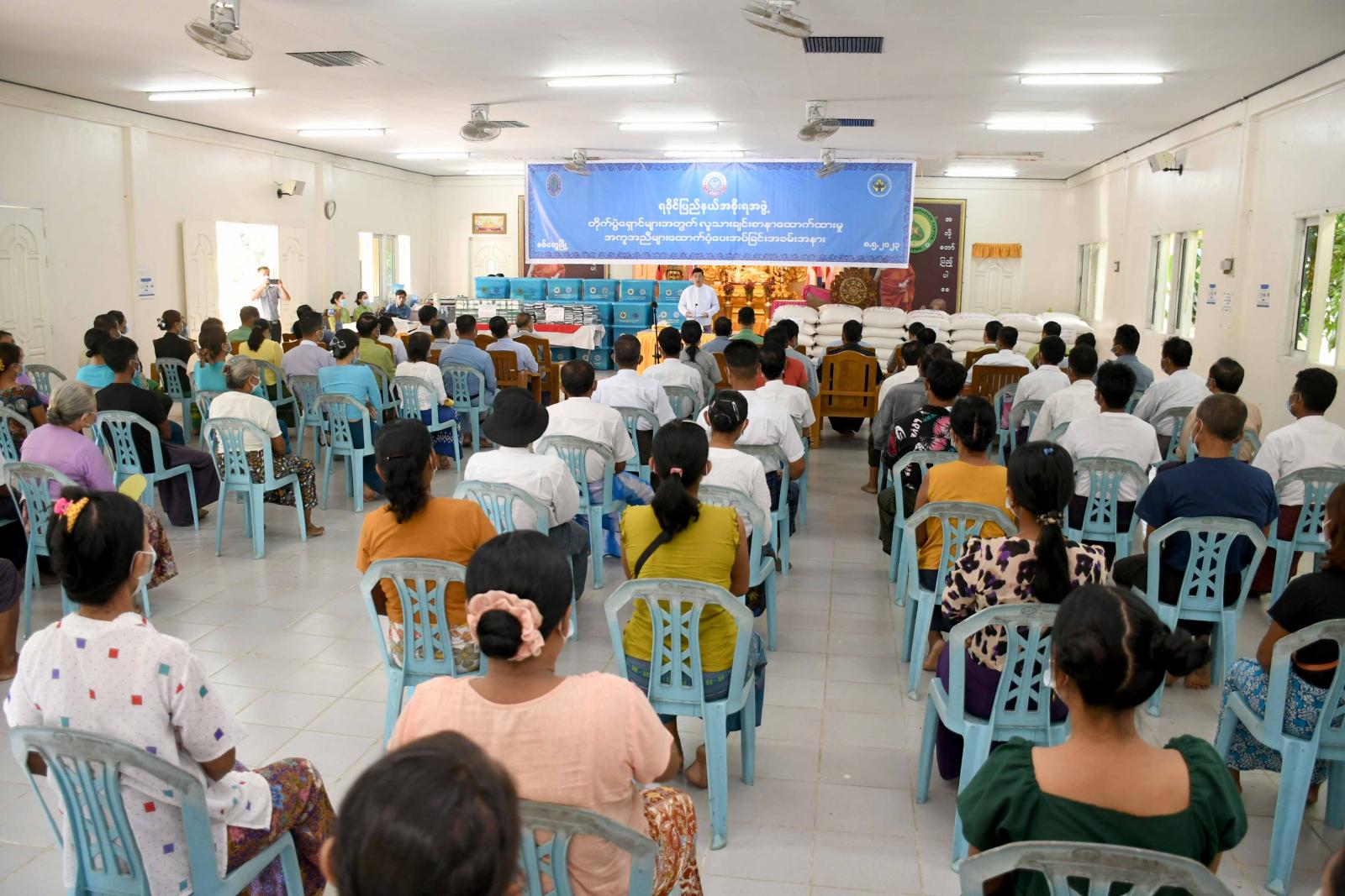 နေရပ်စွန့်ခွာပြည်သူများအတွက် လူသားချင်းစာနာ ထောက်ထားမှုအကူအညီ ထောက်ပံ့ပေးအပ်ခြင်းအခမ်း အနားတွင် အလိုတော်ပြည့်ဘုန်းတော်ကြီးကျောင်းတိုက်ရှိ အိမ်ထောင်စု(၇၁) စု၊ လူဦးရေ (၂၅၀)ဦးနှင့် ဗုဒ္ဓေါမော်ကျောင်းတိုက်ရှိ အိမ်ထောင်စု(၅၉)စု၊ လူဦးရေ (၂၄၁) ဦး စုစုပေါင်း အိမ်ထောင်စု (၁၃၀)စု၊ လူဦးရေ (၄၉၁)ဦး အတွက် ရခိုင်ပြည်နယ် အစိုးရအဖွဲ့၊ နယ်စပ်ရေးရာဝန်ကြီး ဌာနလက်အောက်ရှိ ဒေသဖွံ့ဖြိုးမှုကြီးကြပ်ရေးရုံးနှင့် လူမှုဝန်ထမ်း၊ ကယ်ဆယ်ရေးနှင့်ပြန်လည်နေရာချ ထားရေးဝန်ကြီးဌာန လက်အောက်ရှိ ဘေးအန္တရာယ်ဆိုင်ရာ စီမံခန့်ခွဲမှုဦးစီးဌာနတို့က ဆန်(၁၅၄)အိတ်၊ ကျောင်းစိမ်းဝတ်စုံ(၁၀၀) စုံ၊ ဗလာစာအုပ်ဒါဇင် (၁၀၀)နှင့် ပစ္စည်း (၁၇)မျိုးပါ Family Kit များကို လူသားချင်း စာနာထောက်ထားမှု အကူအညီအဖြစ် ထောက်ပံ့ပေးအပ်ခြင်း ဖြစ်ကြောင်းသိရသည်။