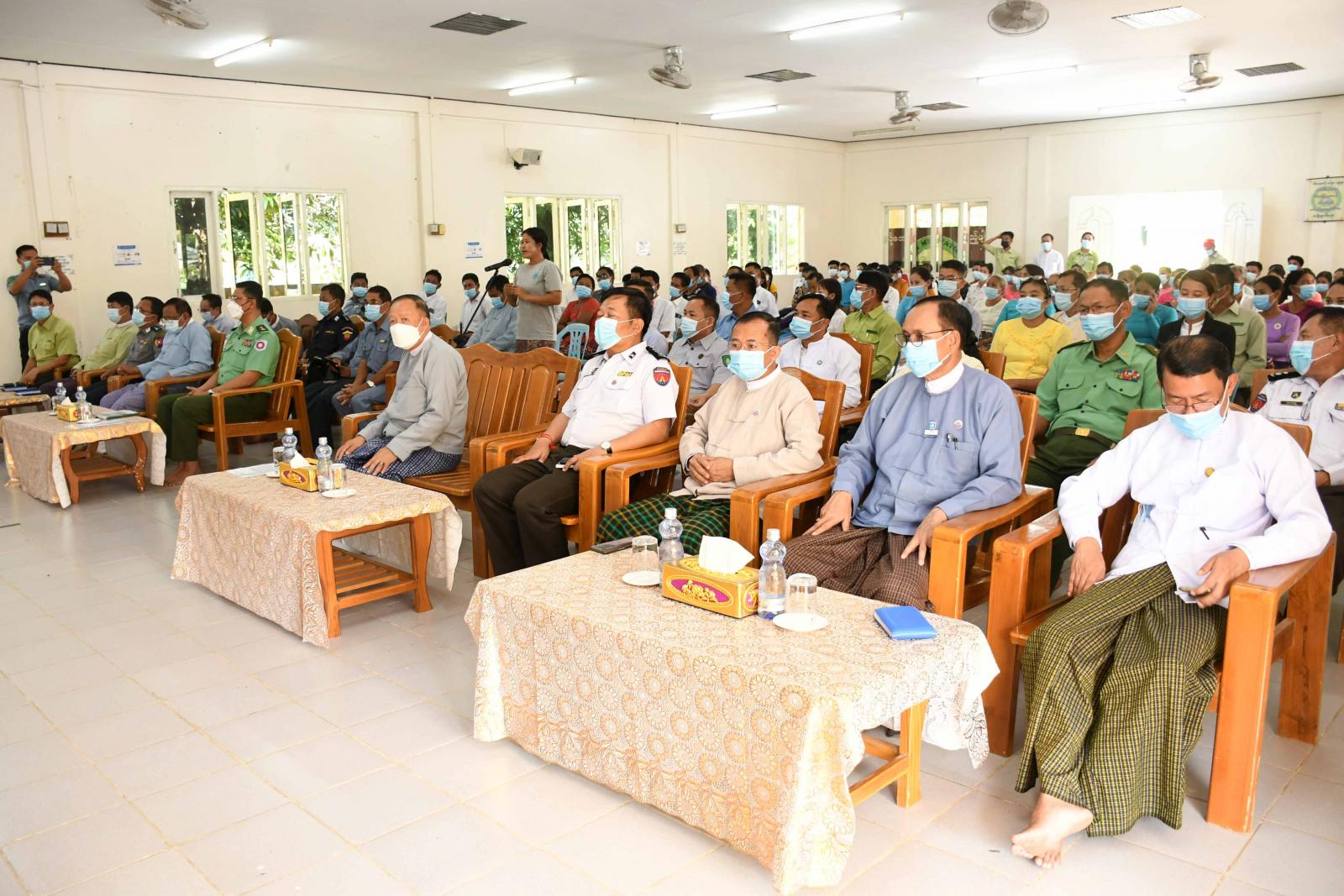 ဦးစွာ ရခိုင်ပြည်နယ်ဝန်ကြီးချုပ် ဦးထိန်လင်းက ယခုယာယီခိုလှုံရာစခန်းတွင်ရောက်ရှိနေကြသည့် မိသားစုဝင်များသည် မိမိတို့၏မူလနေရပ်များကိုစွန့်ခွာပြီး မိမိတို့မိသားစုအတွက် ဘေးကင်းလုံခြုံသည့်နေရာများကို စုဝေးရောက်ရှိ လာကြခြင်းဖြစ်ကြောင်း၊ မိမိတို့မူလနေရပ်မဟုတ်သည့်အတွက် နေထိုင်စားသောက်ရေးနှင့် အသက်မွေးဝမ်းကြောင်းပြုရာတွင် အခက်အခဲအကြပ်အတည်းများ ကြုံတွေ့ကြရမည်ကို ကိုယ်ချင်းစာနာ လည်မိပါကြောင်း၊ တိုက်ပွဲရှောင်အဖြစ် ကြာရှည်ရပ်တည်ခြင်းထက် မိမိတို့မူလနေရာများကို အခြေအနေပေး ပါက ပြန်လည်အခြေချနိုင်ရေး ပြည်နယ်အစိုးရအဖွဲ့ အနေဖြင့် တတ်နိုင်သမျှ ကူညီဆောင်ရွက်ပေးသွားမည် ဖြစ်ကြောင်း၊ မိမိတို့၏နေရပ်ကို ပြန်လည်အခြေချ နေထိုင်ခြင်းမပြုမီကာလအတွင်းမှာ အစိုးရအဖွဲ့နှင့် သက်ဆိုင်ရာဌာနများက ယာယီခိုလှုံရာ စခန်းများတွင် နေထိုင်သူများအတွက် လိုအပ်သည်များ ပူးပေါင်းကူညီ ဆောင်ရွက်ပေးလျက်ရှိကြောင်း၊ ယခုနွေရာသီကာလဖြစ်သည့်အတွက် ပူပြင်းခြောက်သွေ့ပြီး သဘာဝဘေးအန္တရာယ်များကိုလည်း ကြုံတွေ့နိုင်ခြေရှိခြင်းကြောင့် ကျန်းမာရေးကို အထူးဂရုပြုကြရန်လိုကြောင်း၊ မကြာမီ အခြေခံ ပညာကျောင်းများ ပြန်လည်ဖွင့်လှစ်တော့မှာဖြစ်သည့်အတွက် မိမိတို့၏ ရင်သွေးငယ်များကို နီးစပ်ရာ ကျောင်းများတွင် ပညာသင်ကြားကြရန် ပြောကြားလိုကြောင်း၊ နိုင်ငံတော်အနေဖြင့်လည်း KG+9 မသင်မနေရ အခမဲ့ပညာရေးစနစ်ကို အကောင်အထည် ဖော်ဆောင်ရွက်လျက်ရှိသည့်အတွက် မိမိတို့၏ ရင်သွေးများကို ကျောင်းအပ်ကြရန် ထပ်မံတိုက်တွန်းပြောကြားလိုကြောင်း ပြောကြားသည်။