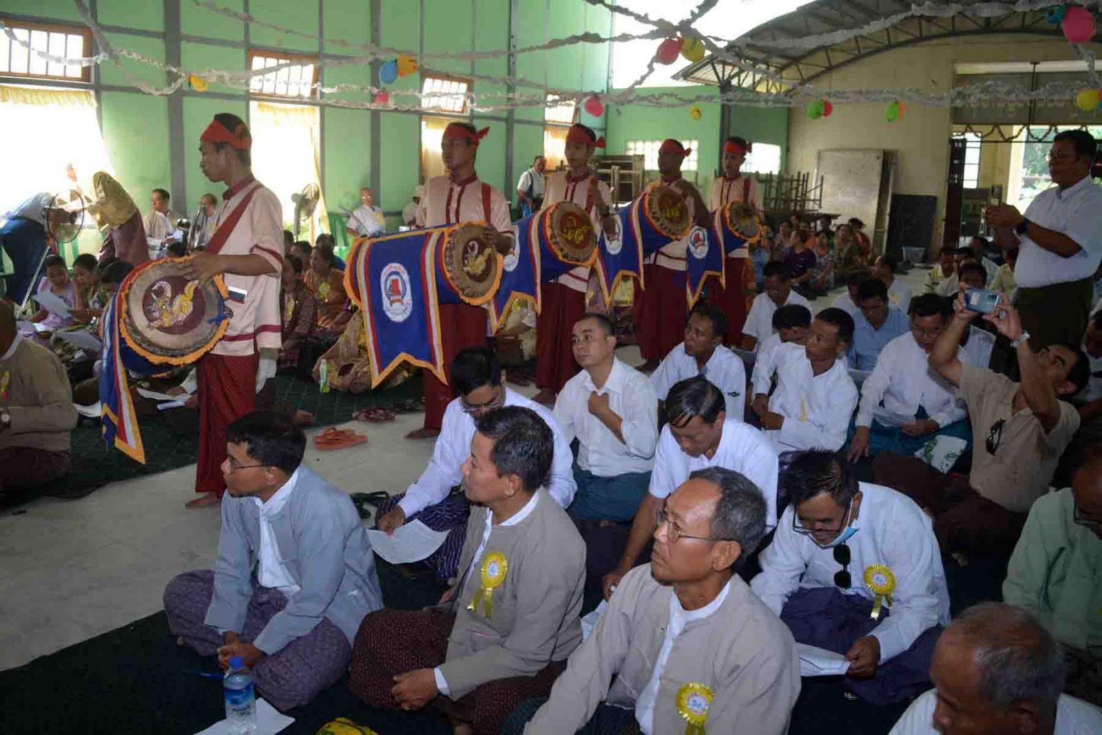 ဦးစွာ ဆရာတော်သံဃာတော်များအား ပင့်ဖိတ်၍ ဘဝတစ်ပါးသို့ ကူးပြောင်းသွားသည့် ဆရာ/မများနှင့်ကျောင်းသား/သူဟောင်းများအတွက် အာရုံပြု၍ အမျှမေတ္တာများပို့သပေးပြီး၊ ပင့်ဖိတ်သံဃာ တော်အရှင်သူမြတ်တို့အား အာရုံဆွမ်းနှင့်နဝကမ္မဝတ္ထုပစ္စည်းများ ဆက် ကပ် လှူဒါန်းပေးခဲ့သည်။ ဆက်လက်၍ အခမ်းအနားကို ရခိုင်မင်္ဂလာစည်တော်များတီးခတ်ပြီး အာစရိယပူဇော်ရတုဖြင့် သီဆို ဖွင့်လှစ်ပေးခဲ့သည်။