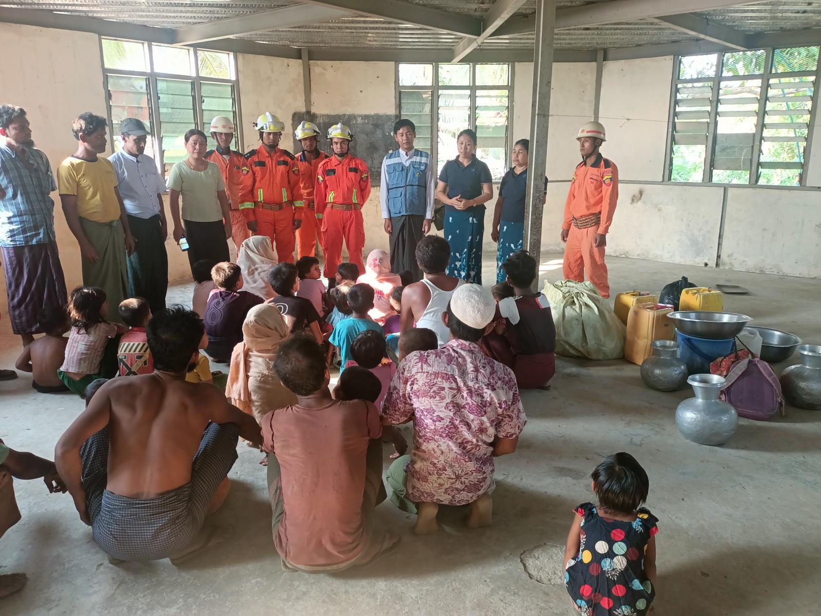 ရခိုင်ပြည်နယ်၊ မောင်တောခရိုင်၊ ဘူးသီးတောင်မြို့၌ မုန်တိုင်းအန္တရာယ်ကြိုတင်ကာကွယ်ရေး အစီအစဉ်များကို အထူးအလေးထားဆောင် ရွက်ကာ မီးသတ်တပ်ဖွဲ့ဝင်များက ကူညီကယ်ဆယ်ရေးပစ္စည်းများ ကြိုတင်ပြင်ဆင်ထားရှိမှုအား ပြည်သူများသို့ အသိပေးကွင်းဆင်း သရုပ်ပြပွဲကို ယမန်နေ့ညနေပိုင်းက ဘူးသီးတောင်မြို့နယ် သံခြေကျေးရွာနှင့် ကုတိုးဆိပ် ကျေးရွာတို့၌ပြုလုပ်ခဲ့ကြသည်။
