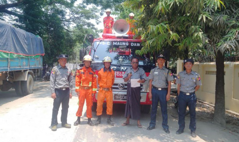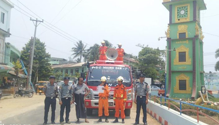 ထိုသို့ အသိပေးနှိုးဆော်ရာတွင် ခရိုင်သဘာဝဘေးအန္တရာယ်စီမံခန့်ခွဲ့မှုအဖွဲ့ကြီးကြပ်မှုဖြင့် မီးသတ်ဦးစီးဌာန၊ ပြန်ကြားရေးနှင့်ပြည်သူ့ဆက်ဆံရေးဦးစီးဌာန၊ မြန်မာနိုင်ငံရဲ တပ်ဖွဲ့ဝင်များ၊ ရပ်ကွက်အုပ်ချုပ်ရေးမှူးများနှင့် တာဝန်ရှိသူများက မုန်တိုင်းအန္တရာယ်နှင့် ရေကြီးခြင်း၊ မြေပြိုခြင်းတို့ ဖြစ်ပေါ်လာပါက ကြိုတင်သတိပြု ကာကွယ်နိုင်စေရန်နှင့် မုန်တိုင်းကြောင့် ပျက်ဆီးဆုံးရှုံးမှုများ လျော့ချနိုင်စေရန် အများ ပြည်သူများအနေဖြင့် မုန်တိုင်းနှင့်ပတ်သက်သည့် ကြိုတင်ကာကွယ်သင့်သည့် လုပ်ငန်းများ၊ လိုက်နာဆောင်ရွက်ရမည့်လုပ်ငန်းများ၊ သတိပြုရှောင်ရှားသင့်သည့် အပြုအမူများကို သိရှိစေရန်နှင့် နိုင်ငံတော်အစိုးရမှ တရားဝင်ထုတ်ပြန်ကြေငြာသော မုန်တိုင်းဘေးအန္တရာယ်သတင်းများကို အစဉ်မပြတ် နားထောင်ကြရန်၊ လေပြင်းဘေးကြိုတင်ကာကွယ်ရေးနှင့် တုံ့ပြန်နိုင်ရေး အသိပညာပေးချက်များအား ပြည်သူများမှ သိရှိလိုက်နာ ဆောင်ရွက်နိုင်စေရန်အတွက် ရပ်ကွက်၊ ကျေးရွာများတွင် လိုက်လံအသိပေး နှိုးဆော်လျက်ရှိကြောင်း သိရသည်။