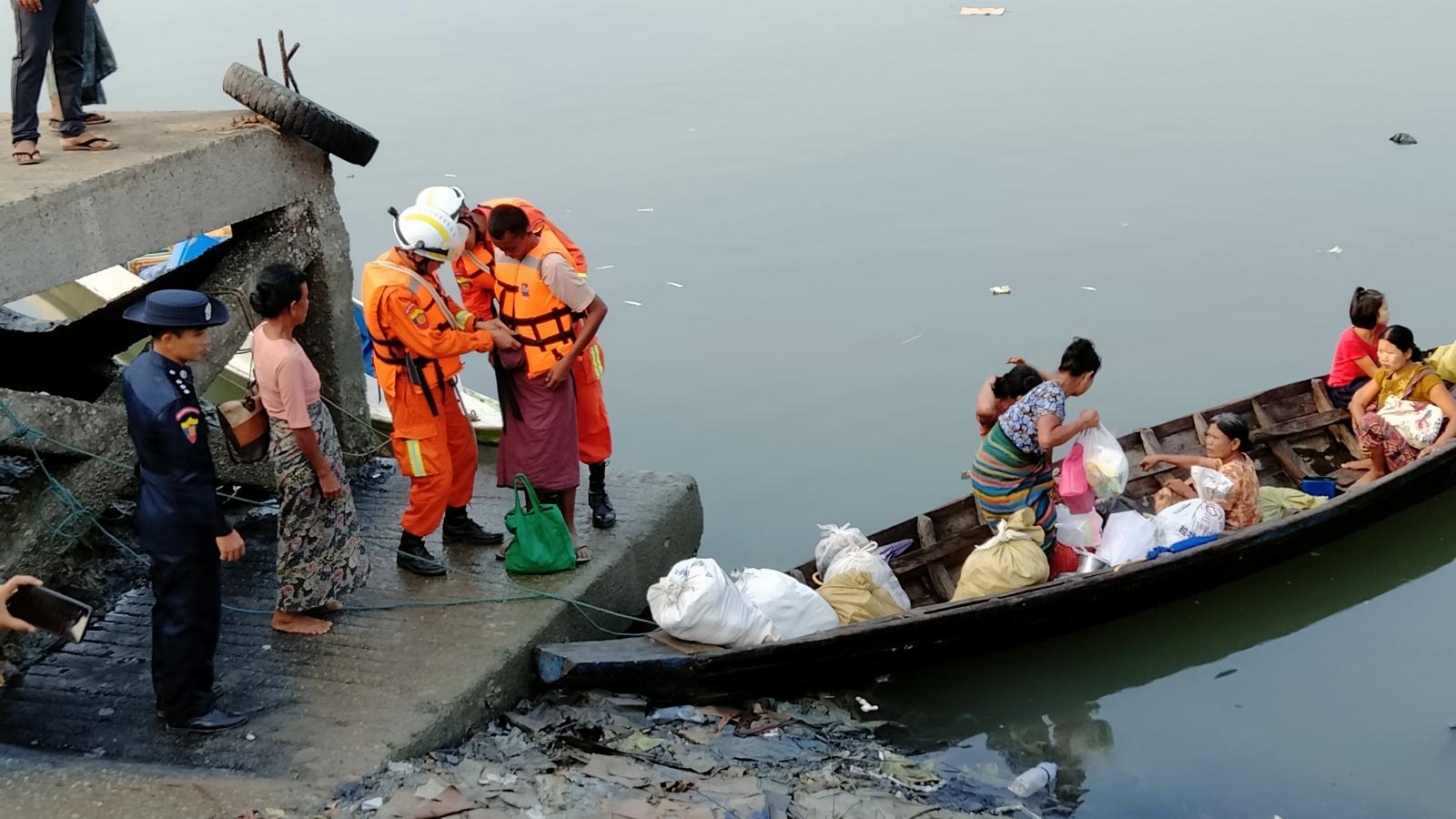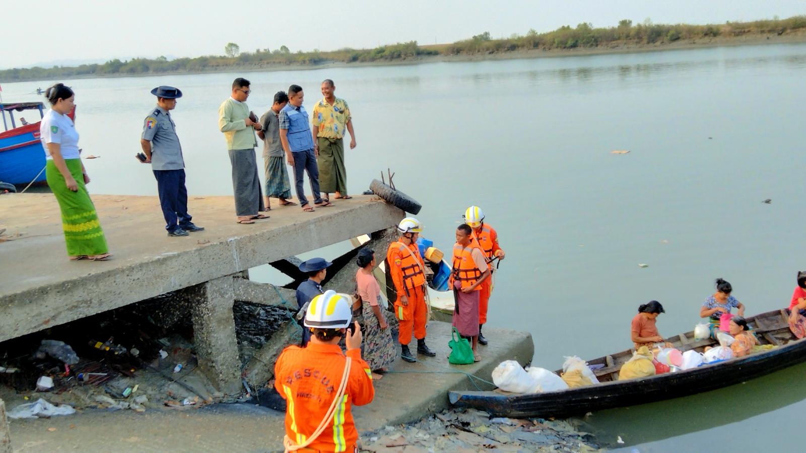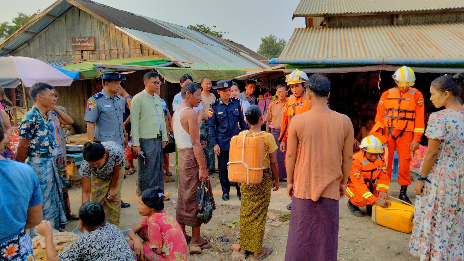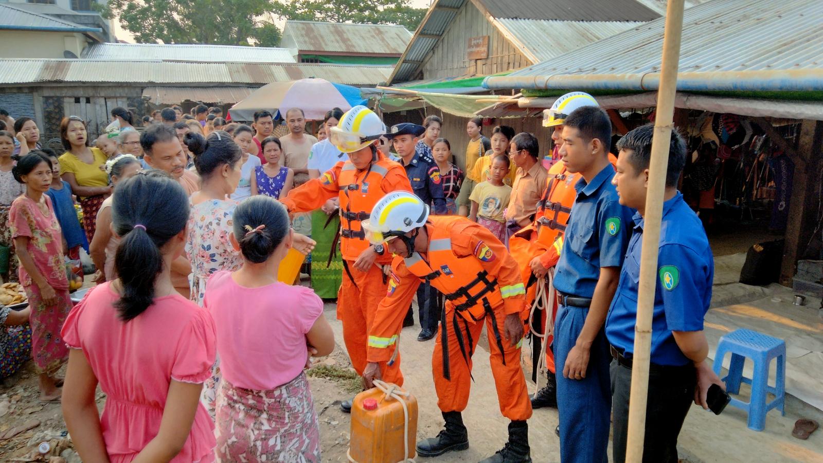ရခိုင်ပြည်နယ်၊ စစ်တွေခရိုင်၊ရသေ့တောင်မြို့၌ သဘာဝဘေးအန္တရာယ်ဆိုင်ရာ စီမံခန့်ခွဲမှုအဖွဲ့၏ ကြီးကြပ်မှုဖြင့်ဌာနဆိုင်ရာဝန်ထမ်းများ၊ မြန်မာနိုင်ငံ မီးသတ်တပ်ဖွဲ့ဝင်များ၊ လူမှုရေးအသင်းအဖွဲ့များ၊ ဒေသခံပြည်သူများ ပူးပေါင်းပါဝင် လေ့ကျင့်သော မုန်တိုင်းဘေးအန္တရာယ်သဏ္ဍာန်တူ ဇာတ်တိုက်လေ့ကျင့်ခန်းကို ယနေ့နံနက် ၇ နာရီအချိန်ကမြို့မစျေးဝင်းအတွင်းပြုလုပ်ရာ မြို့နယ် သဘာဝဘေးအန္တရာယ်ဆိုင်ရာစီမံခန့်ခွဲမှုအဖွဲ့ ဥက္ကဋ္ဌ ဦးနိုင်လင်းထက်နှင့် ဌာနဆိုင်ရာတာဝန် ရှိသူများ၊ ဒေသခံပြည်သူများ တက်ရောက်ကြည့်ရှု အားပေးကြသည်။
