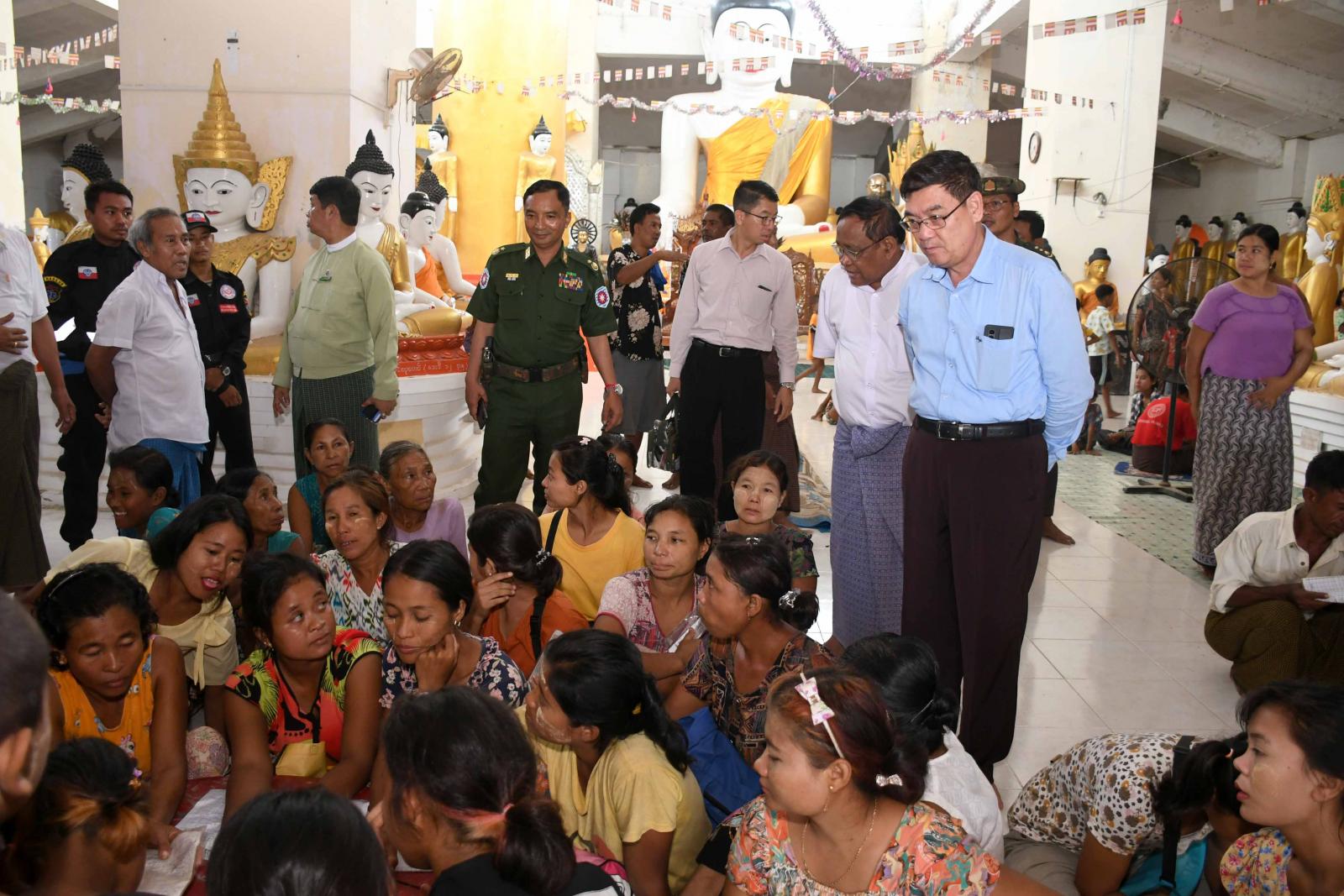 ညနေပိုင်းတွင် ပြည်နယ်ဝန်ကြီးချုပ်နှင့်အဖွဲ့သည် စစ်တွေမြို့၊ အာကျိတ်တော်ကုန်းပေါ်ရှိ အဓိဋ္ဌာန်ဘုန်းတော်ကြီး ကျောင်းတိုက်၌ စစ်တွေမြို့ပေါ်ရပ်ကွက်များဖြစ်သော ဆင်ကူးလမ်း၊ အုန်းတစ်ပင်ရပ်ကွက်နှင့် ဗျိုင်းဖြူရွာ၊ ကျေးတောကျေးရွာတို့မှ မုန်တိုင်းအန္တရာယ်ကြောင့် တိမ်းရှောင် လာကြသော ပြည်သူများအား သွားရောက်တွေ့ဆုံပြီး လိုအပ်သည်များကို ပေါင်းစပ်ညှိနှိုင်း ပေးကြ သည်။ အလားတူ ပြည်နယ်ဝန်ကြီးချုပ်နှင့်အဖွဲ့သည် စစ်တွေမြို့နယ်၊ ချောင်းနွယ်မင်းဂံ ကျေးရွာ မုန်တိုင်းဒဏ်ခံအဆောက်အဦ၌ ချောင်းနွယ်မင်းဂံကျေးရွာနှင့် ဇော်မတက်ကျေးရွာတို့မှ ပြောင်းရွှေ့ရောက်ရှိလာကြသော ပြည်သူများအား သွားရောက်တွေ့ဆုံကြကာ လိုအပ်သည်များကို ပေါင်းစပ်ညှိနှိုင်းဖြည့်ဆည်းပေးကြပြီး သက်ကြီးရွယ်အိုများနှင့် ကလေးသူငယ်များအား စားသောက် ဖွယ်ရာများ ပေးအပ်ခဲ့ကြသည်။