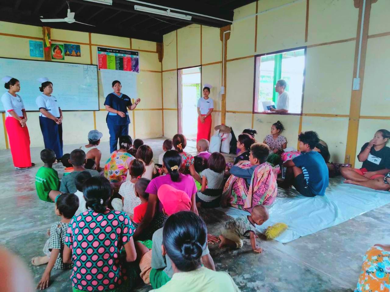 ထိုသို့ဆောင်ရွက်ပေးရာတွင် မြို့နယ်ကျန်းမာရေးဦးစီးဌာနမှ ရွာမရပ်ကွက်ရှိ ညောင်ဝိုင်းဘုန်းတော်ကြီးကျောင်းနှင့် ဂွ အ.ထ.က ကျောင်းရှိစုရပ်တွင်လည်းကောင်း၊ မြို့မရပ်ကွက်ရှိ မြို့ဦးတောင်ပေါ်ကျောင်း၊ အ.လ.က အလယ်ရွာ၊ ဇေယျမင်္ဂလာသိဒ္ဓိကျောင်းရှိ စုရပ်တို့တွင်လည်းကောင်း မုန်တိုင်းဘေးရှောင် ပြည်သူများထဲမှ နှာစေး၊ ချောင်းဆိုးနှင့် ဝဲယားနာရောဂါရှိသည့် ကလေးငယ်များအား ကျန်းမာရေးစောင့်ရှောက်မှုပေးခဲ့ပြီး ကျန်းမာရေးအသိပညာပေးခြင်း လုပ်ငန်းများကိုလည်း ဆောင်ရွက်ပေးခဲ့ကြောင်း သိရသည်။