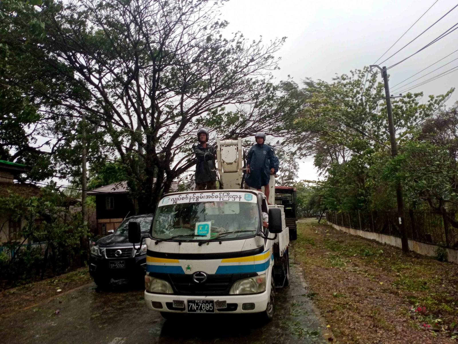 ရခိုင်ပြည်နယ်၊ ကျောက်ဖြူမြို့၌ အလွန့်အလွန်အားကောင်းသော ဆိုင်ကလုန်းမုန်တိုင်းတိုက်ခတ် မှုကြောင့် နေအိမ်အချို့ အမိုးလန်ပျက်စီးခဲ့ပြီး သစ်ပင်၊ သစ်ကိုင်းများနှင့် ဓာတ်တိုင်များကျိုးကျ၊ ပျက်စီးသဖြင့် တာဝန်ရှိသူများမှ အချိန်နှင့်တစ်ပြေးညီ ရှင်းလင်းဆောင်ရွက်လျက်ရှိသည်။