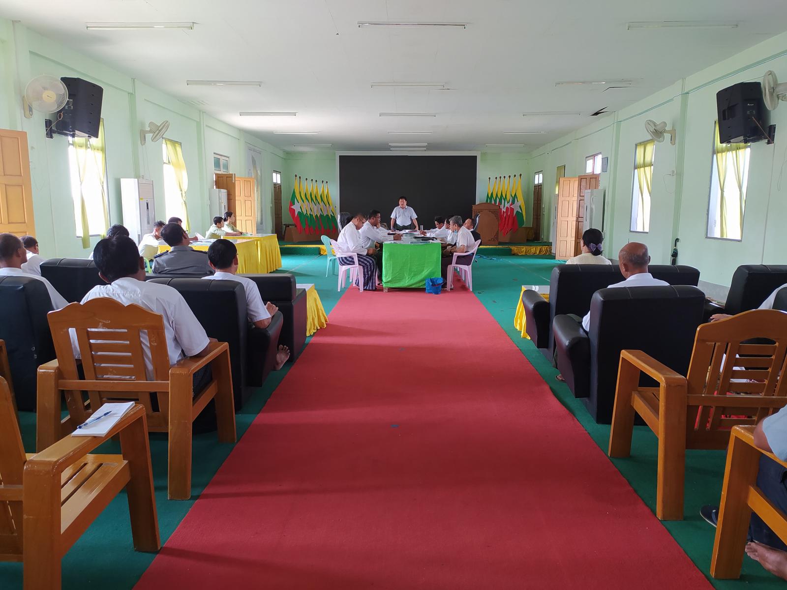 ရှေးဦးစွာ ခရိုင်သဘာဝဘေးအန္တရာယ်ဆိုင်ရာ စီမံခန့်ခွဲမှုကော်မတီဥက္ကဋ္ဌ ခရိုင်အုပ်ချုပ်ရေးမှူး ဦးကောင်းမြတ်နိုင်မှ အဖွင့်အမှာ စကားပြောကြားရာတွင် မိမိဌာန ရုံးအဆောက်အဦများပျက်စီး ဆုံးရှုံးစာရင်းများပြုစု၍ ခရိုင်အထွေထွေအုပ်ချုပ်ရေးဦးစီးဌာနရုံးသို့ အမြန်ဆုံးပေးပို့ကြရန်၊ ရုံးဌာနအလိုက် နိုင်ငံတော်အလံတိုင်များ ပျက်စီးသွားပါက အမြန်ဆုံးဆောင်ရွက်ကြရန်၊ မြို့နယ်အတွင်းရှိ စာသင်ကျောင်းများနှင့် ဆေးပေးခန်းများ၊ ဆေးရုံးများ ထိခိုက်ပျက်စီးမှုစာရင်း ပြုစု၍ပေးပို့ကြရန်၊ ခုချိန်တွင် ပြန်လည်ထူထောင်ရေး လုပ်ငန်းများ ဆောင်ရွက်နေသည့်အတွက် ဖွဲ့စည်းထားသော ကော်မတီအလိုက် ပေးအပ်သောတာဝန်များကို ကျေပွန်အောင် ထမ်းဆောင်ကြရန် စသောအကြောင်းအရာများကို ရှင်းလင်းပြောကြားခဲ့သည်။