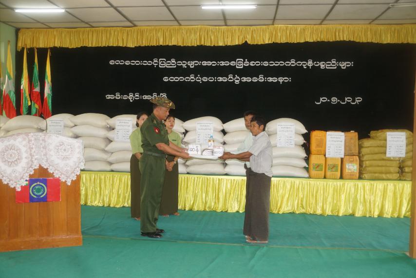 ထောက်ပံ့ပေးအပ်ပွဲသို့ အနောက်ပိုင်းတိုင်းစစ်ဌာနချုပ် ဒုတိယတိုင်းမှူး ဗိုလ်မှူးချုပ် အောင်ကျော်မင်းနှင့် ခရိုင်သဘာဝဘေးအန္တရာယ်ဆိုင်ရာစီမံခန့်ခွဲရေးကော်မတီ ခေတ္တဥက္ကဋ္ဌ ဒုတိယဗိုလ်မှူး ကြီးမောင်မောင်ခိုင်နှင့်အဖွဲ့ဝင်များ၊ မြို့နယ်သဘာဝဘေးအန္တ ရာယ်ဆိုင်ရာစီမံခန့်ခွဲမှုကော်မတီဥက္ကဋ္ဌ ဦးစိုးမင်းထက်နှင့်အဖွဲ့ဝင်များ၊ ဌာနဆိုင်ရာတာဝန်ရှိသူများ၊ ရပ်ကွက်ကျေးရွာအုပ်ချုပ်ရေးမှူးများနှင့် လေဘေးသင့်ပြည်သူ များတက်ရောက်ခဲ့ကြကြောင်း သိရသည်။