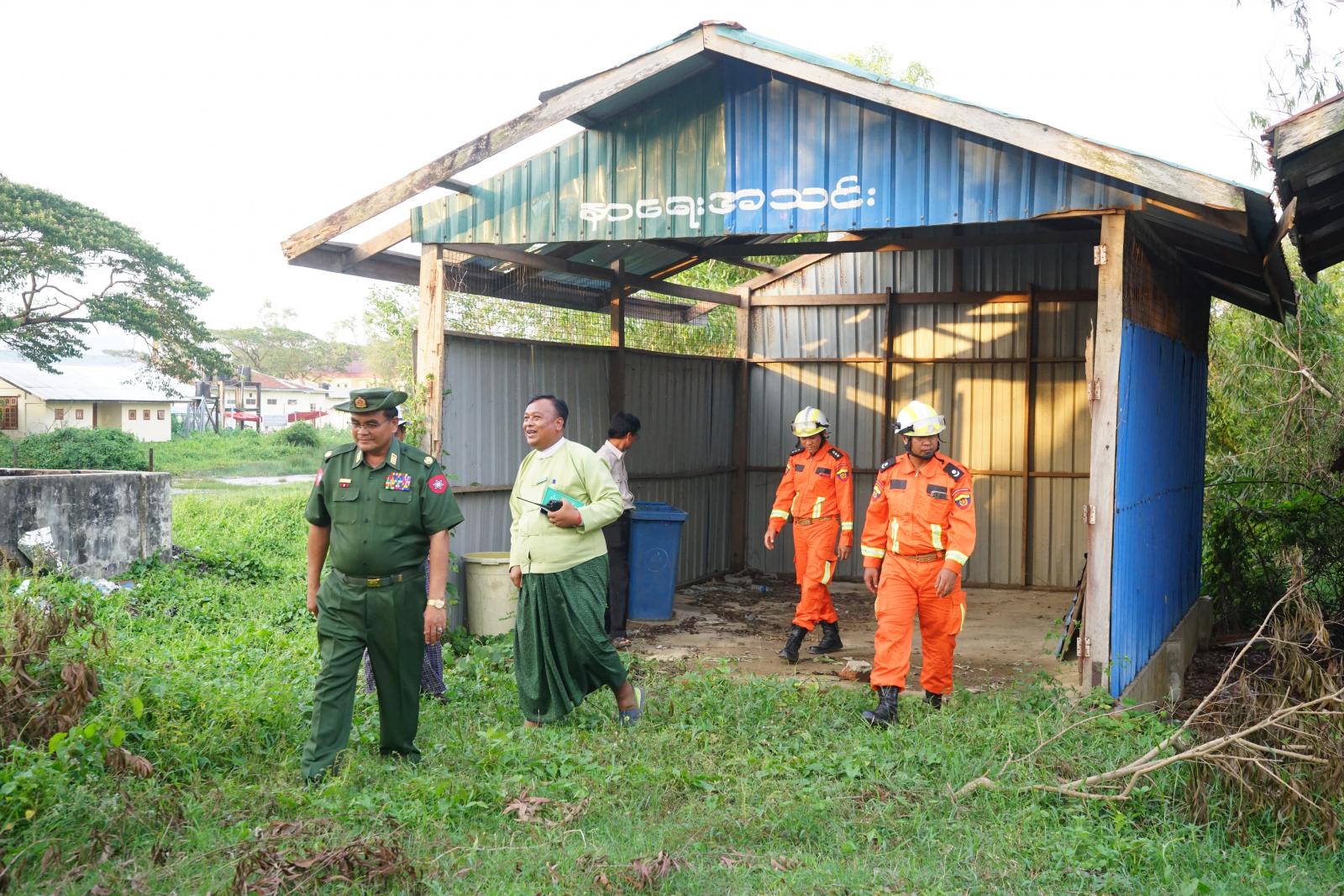 ရခိုင်ပြည်နယ်၊ မောင်တောမြို့၌ မုန်တိုင်းဘေးကြောင့် လေဘေးသင့် ပျက်စီးဆုံရှုံးခဲ့သော ကျေးရွာများတွင် ပြန်လည်ထူထောင်ရေး ကိစ္စရပ်များ ဆောင်ရွက်နိုင်ရေးအတွက် နိုင်ငံတော်မှ မောင်တောဒေသသို့ အနီးကပ်ကြီးကြပ်နိုင်ရန် တာ၀န်ပေးခဲ့ရသည့် ဗိုလ်မှူးချုပ်တင်ဆွေ သည် ခရိုင်စီမံအုပ်ချုပ်ရေးအဖွဲ့ဉက္ကဋ္ဌ ဦးနေဦးနှင့် တာ၀န်ရှိသူများ နှင့်အတူယမန်နေ့ ညနေပိုင်းက လေဘေးကြောင့် ပျက်စီးခဲ့သော အဆောက်အဦးများအား မြေပြင်ကွင်းဆင်း စစ်ဆေးခဲ့ကြသည်။